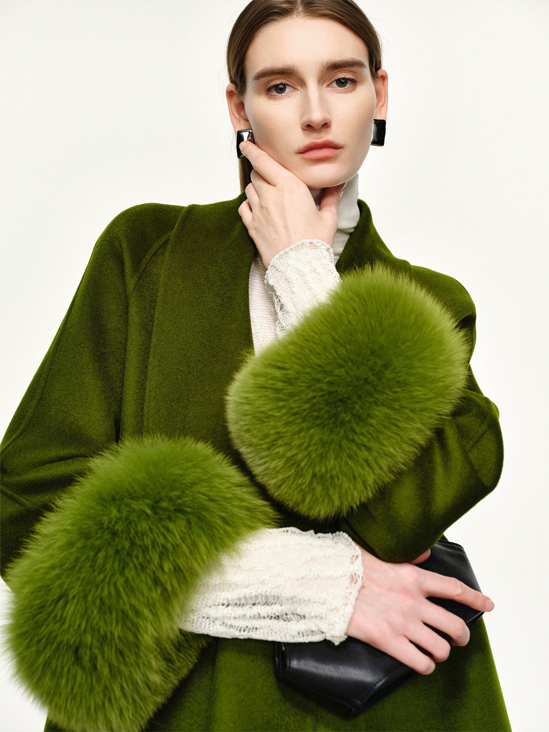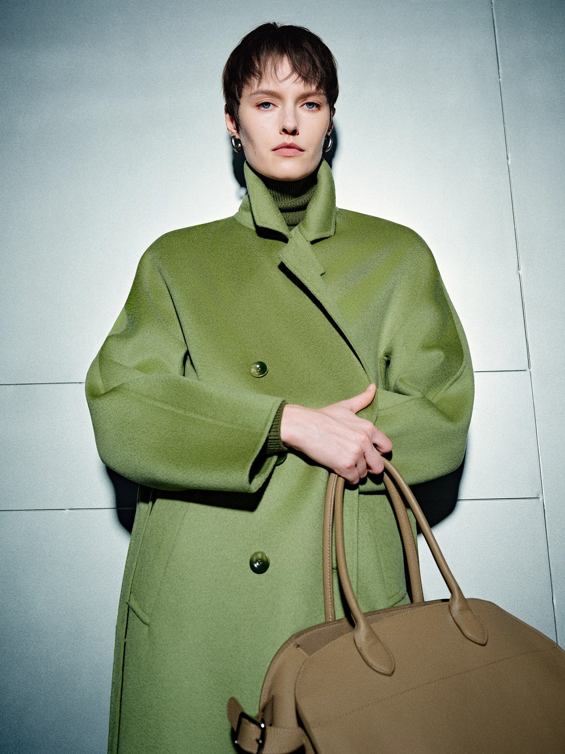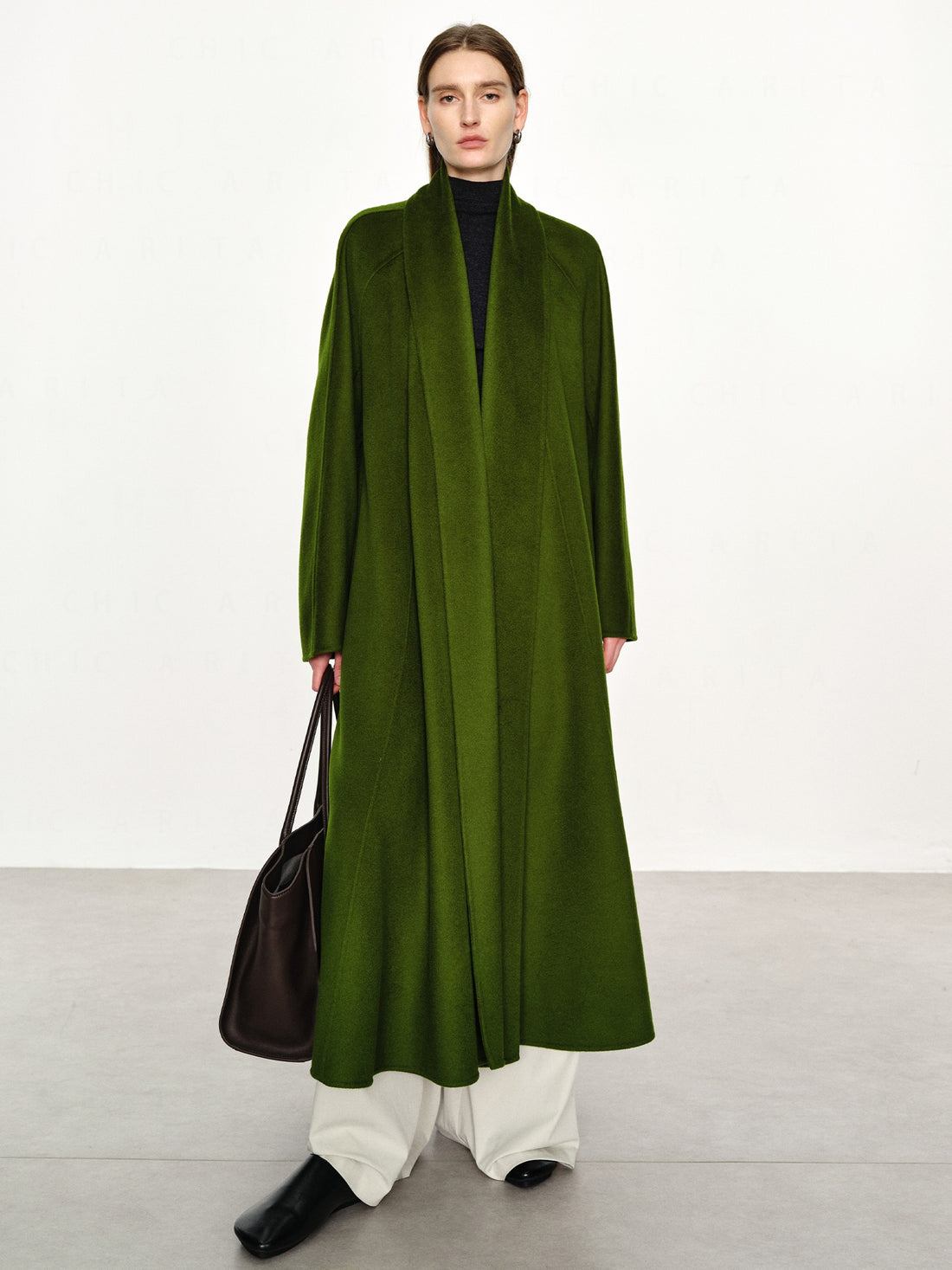 100% Cashmere Double-Faced Coat for Women – “Free Traveler” Overcoat in Lotus Green