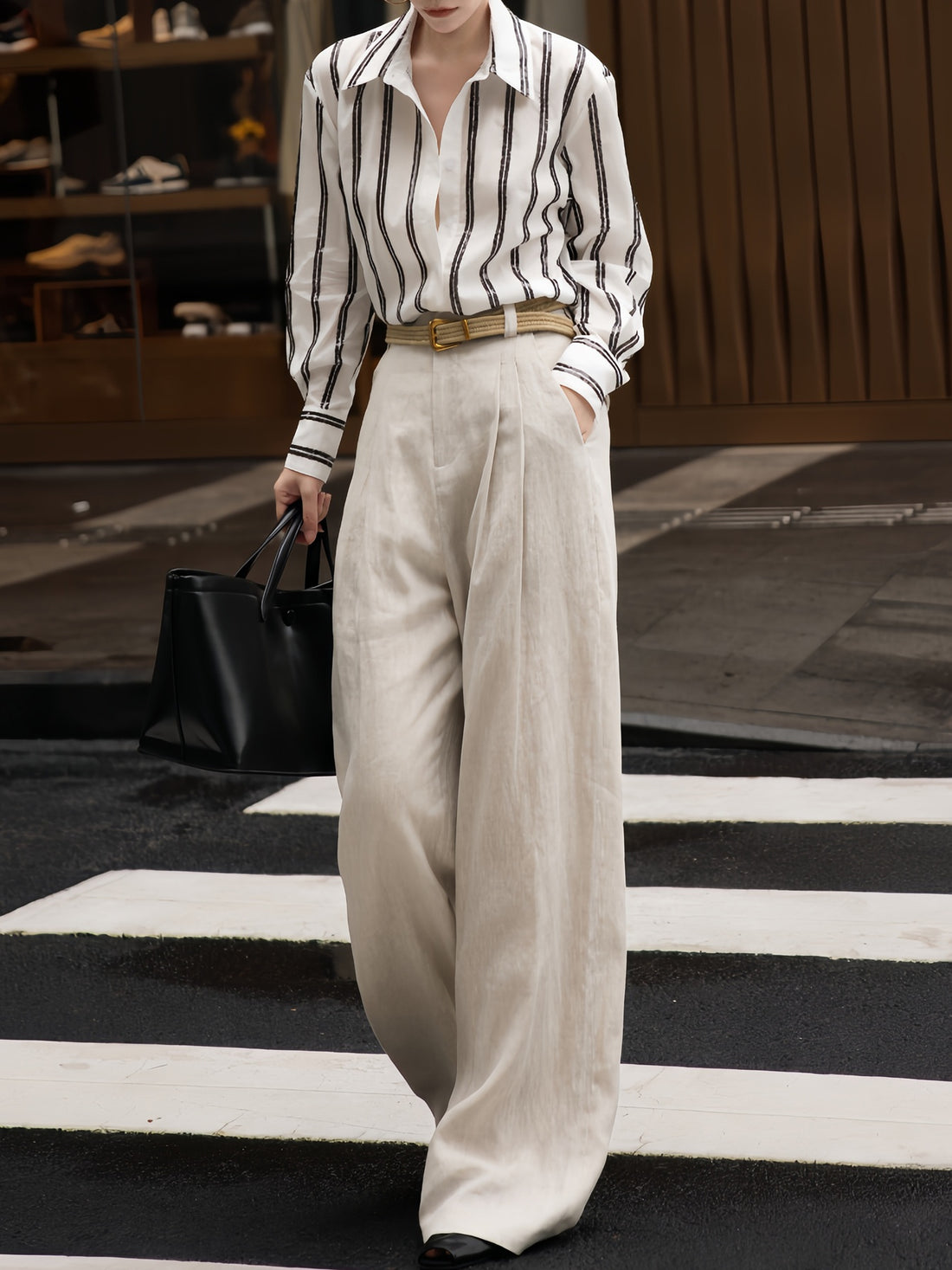 Casual Linen Stripe Suit – Autumn New Arrival with Lazy Aesthetic