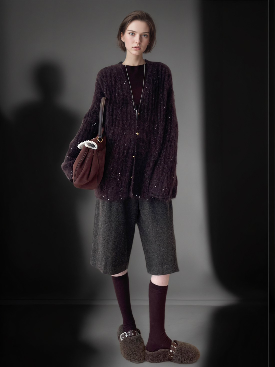 Women’s Luxury Mohair Blend Sequin Cardigan | Soft Shimmer Knit Sweater with Metallic Thread