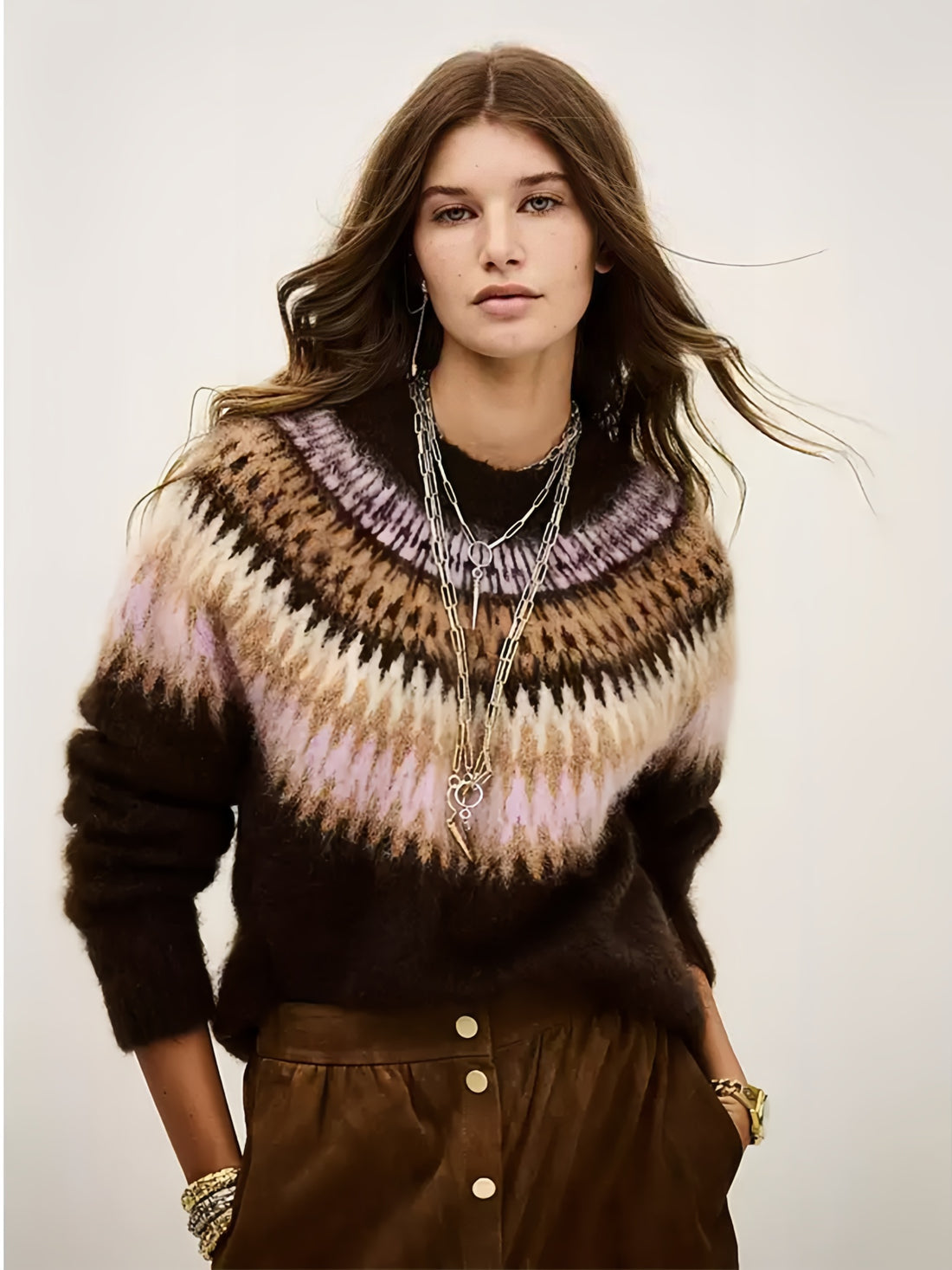 Winter Romance Retro Fair Isle Wool Sweater – Soft, Plush, High-Warm Inverted Trapeze Knitwear