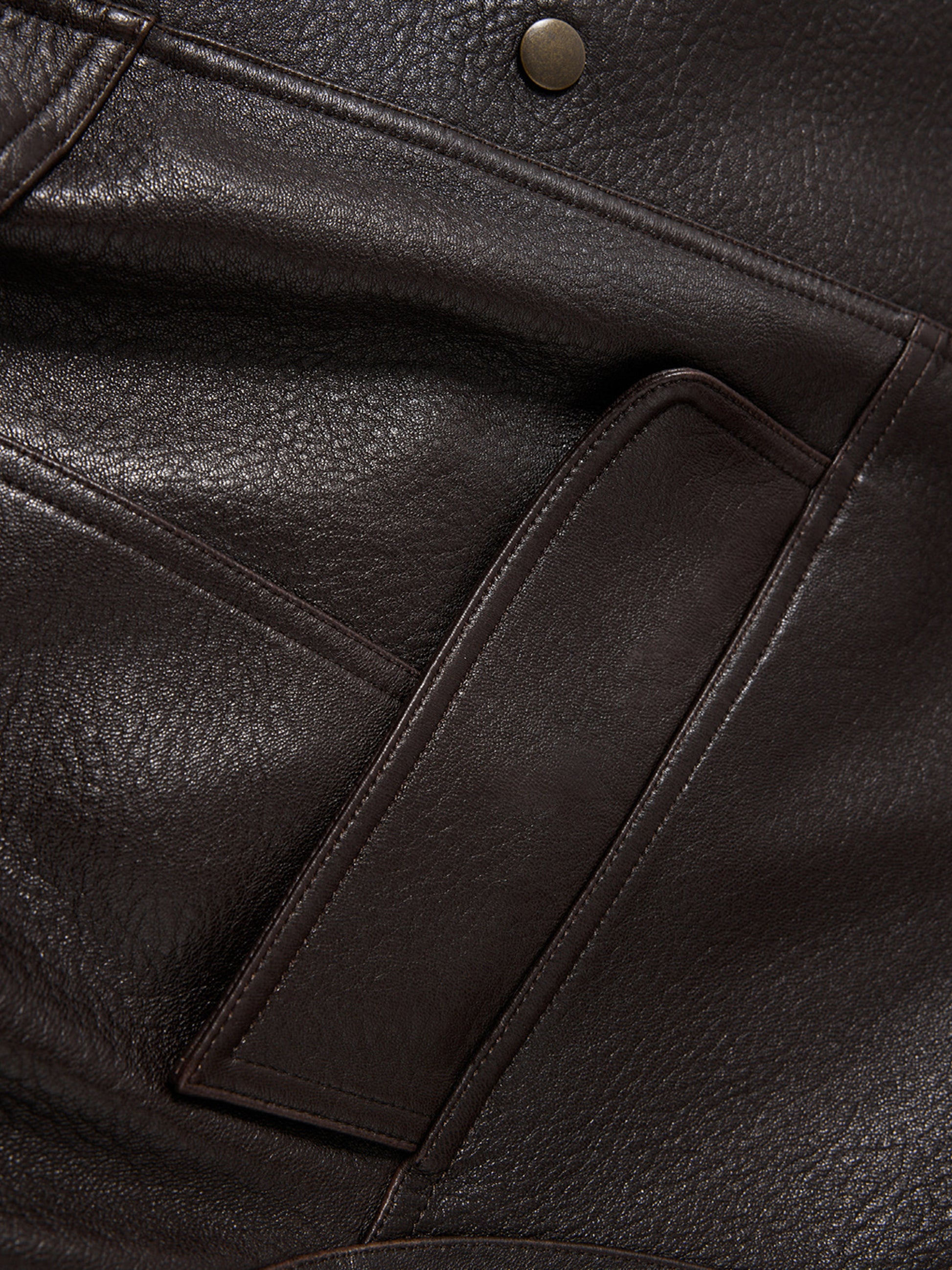 2025 Fall/Winter Women’s Vintage Sheepskin Leather Jacket – Double-Layer Lapel & Structured Panel Design