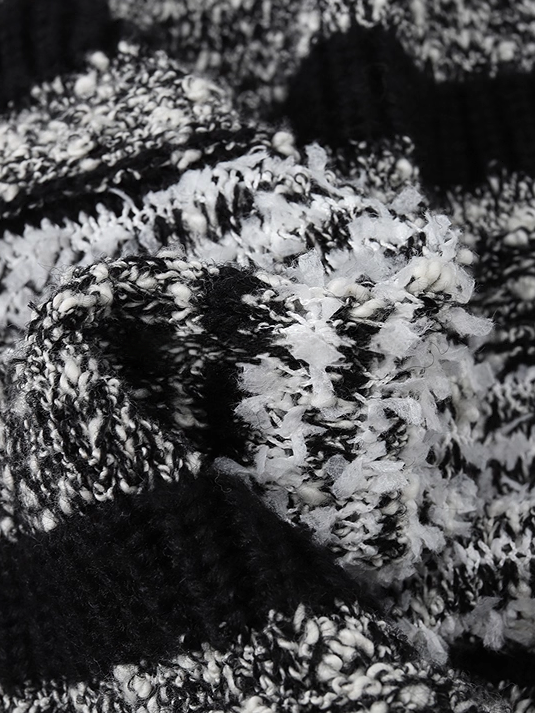 - Modern “linear language” pattern created by blending multi‑colored fancy yarns for a textured, graphic look
