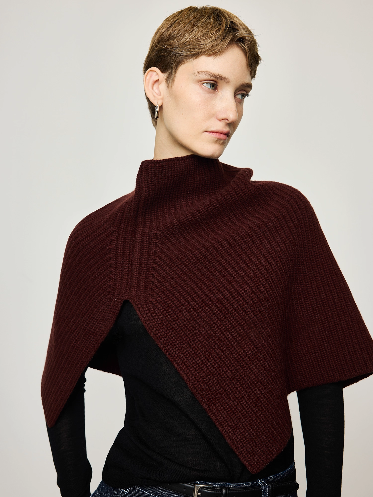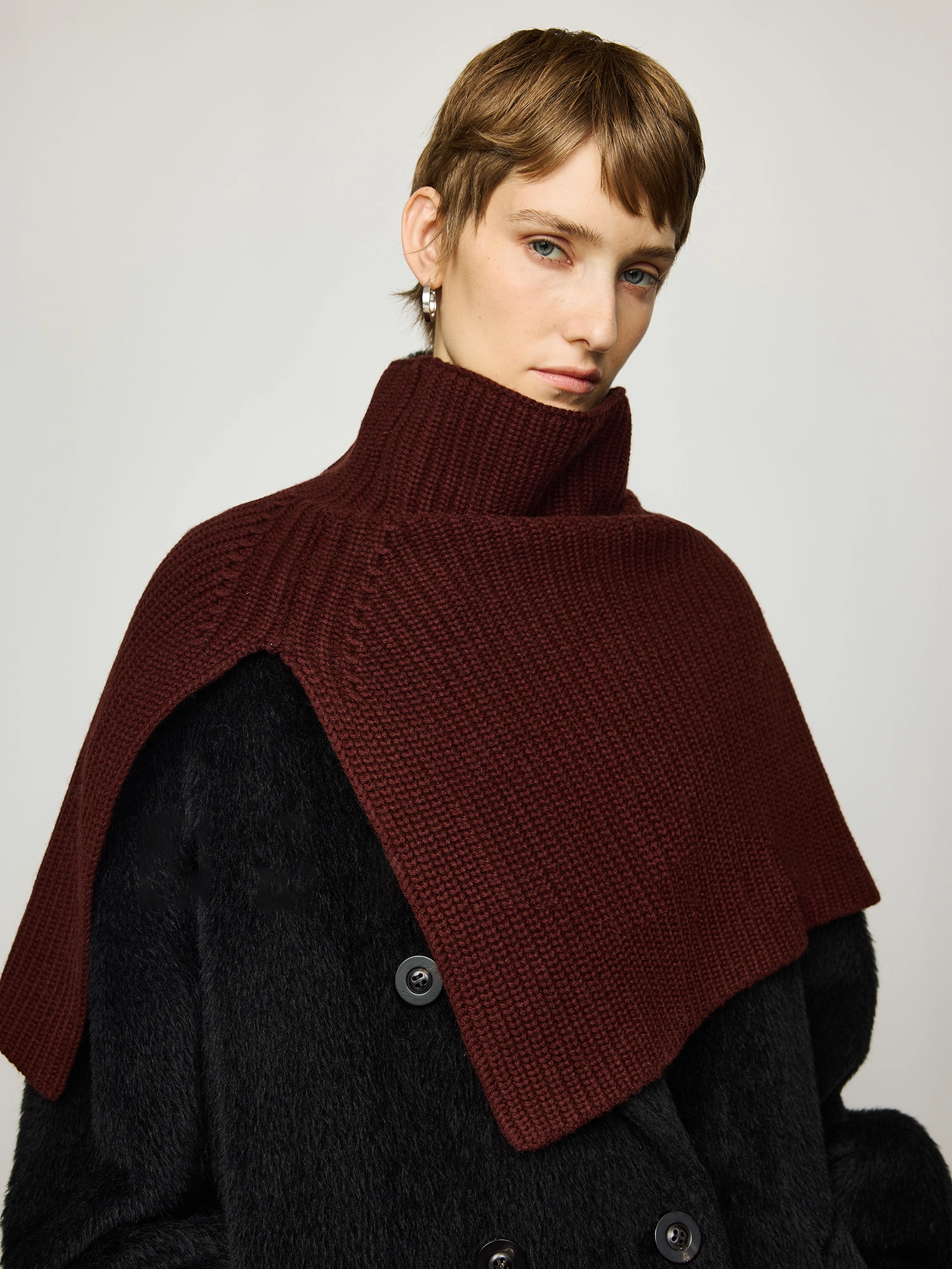 Italian Wool-Cashmere Turtleneck Split Knit Shawl Scarf | Multi-Style Wrap Accessory