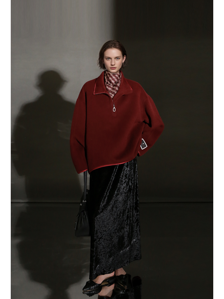Oversized Camel Hair Sweatshirt Coat for Women – Stand Collar Double-Faced Wool Jacket with Minimalist Luxe Style