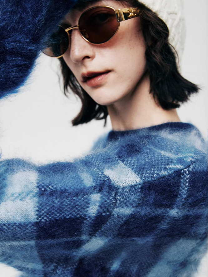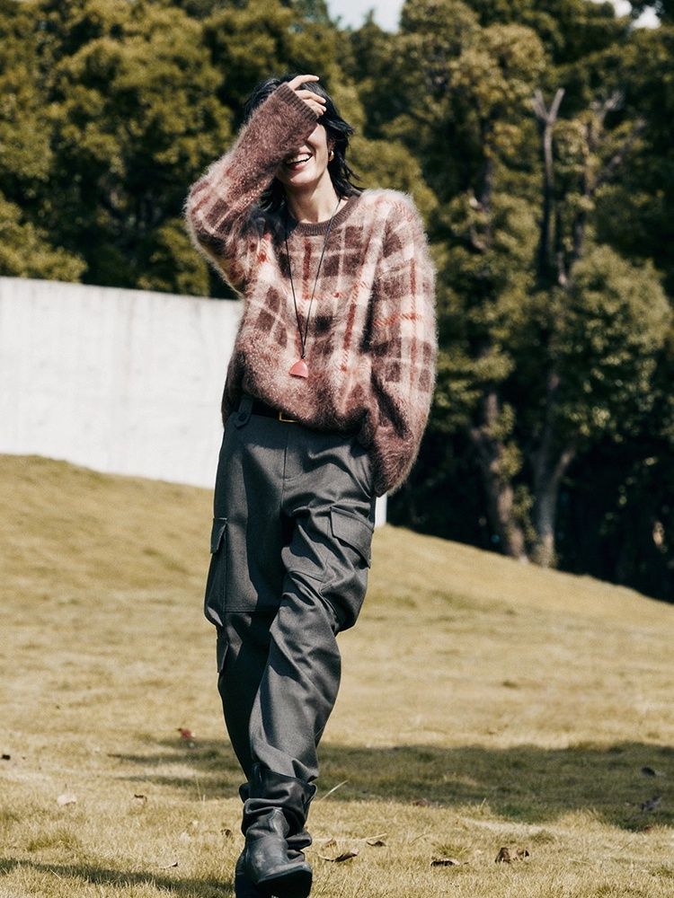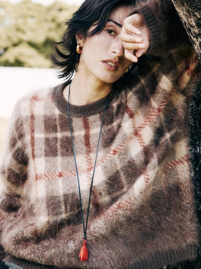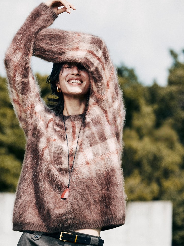 470g Thick Plaid Brushed Cashmere Sweater – Slimming, Wide-Fit Cozy Knit Top
