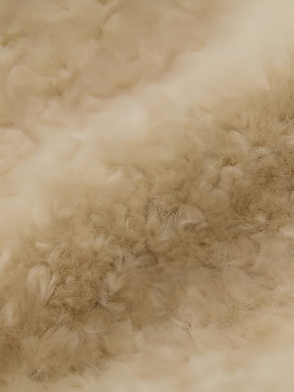 Outer Layer: 89.7% Polyester, 10.3% Spandex | Under Pile: 100% Sheep Wool | Pile Base: 100% Polyester | Trim: 100% Polyester
