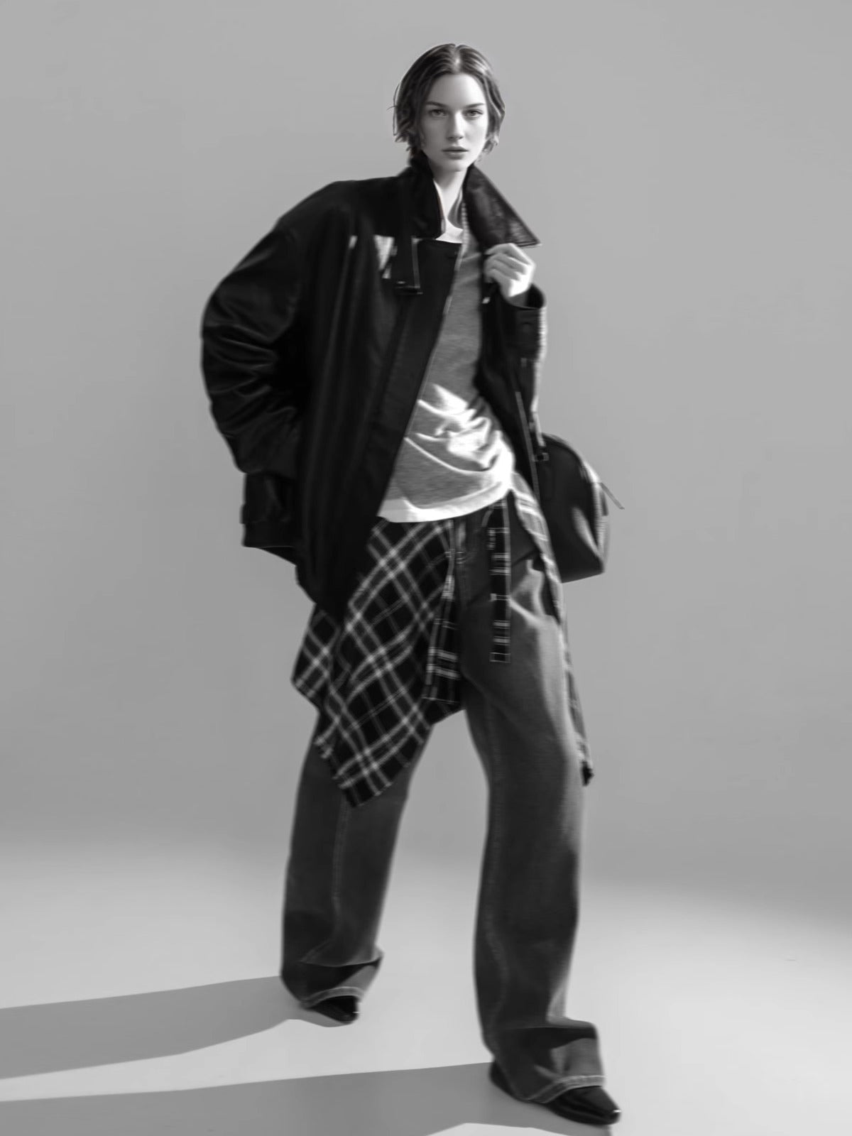 - Sophisticated leather jacket that combines帅气 with refined elegance