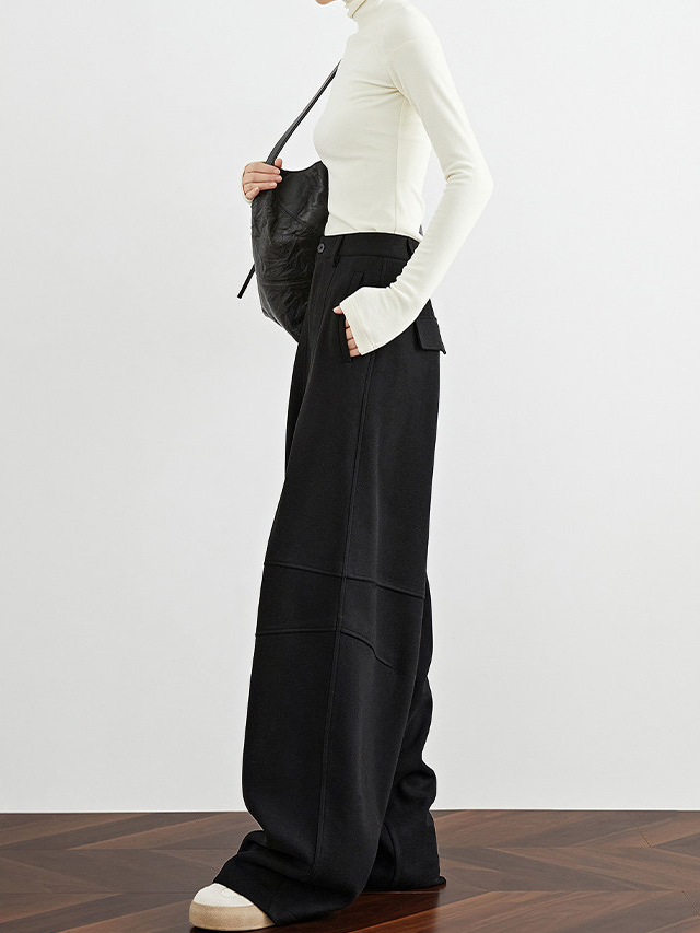 Women's Black Scythe Pants – Fall/Winter Extended Wool Wide-Leg Banana Trousers