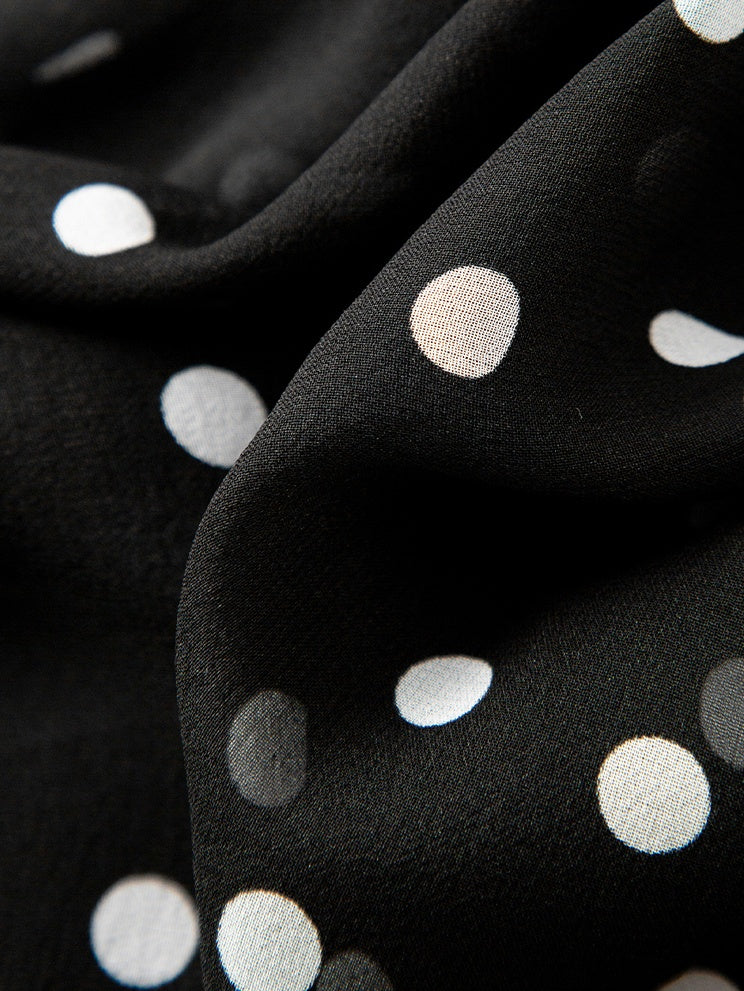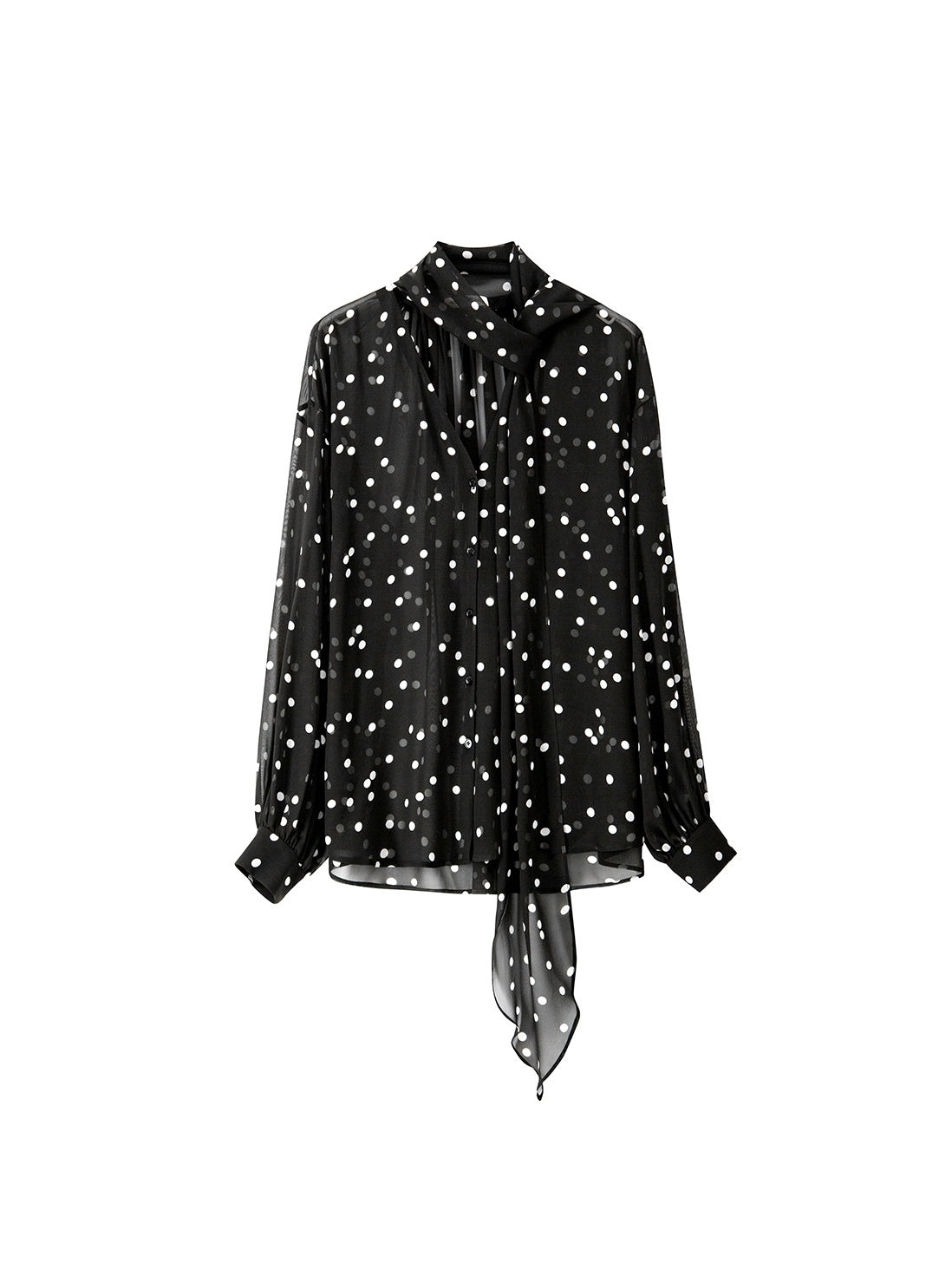 12MM Pure Mulberry Silk Polka Dot Chiffon Blouse | Irregular Hem Ribbon-Tie Women's Shirt