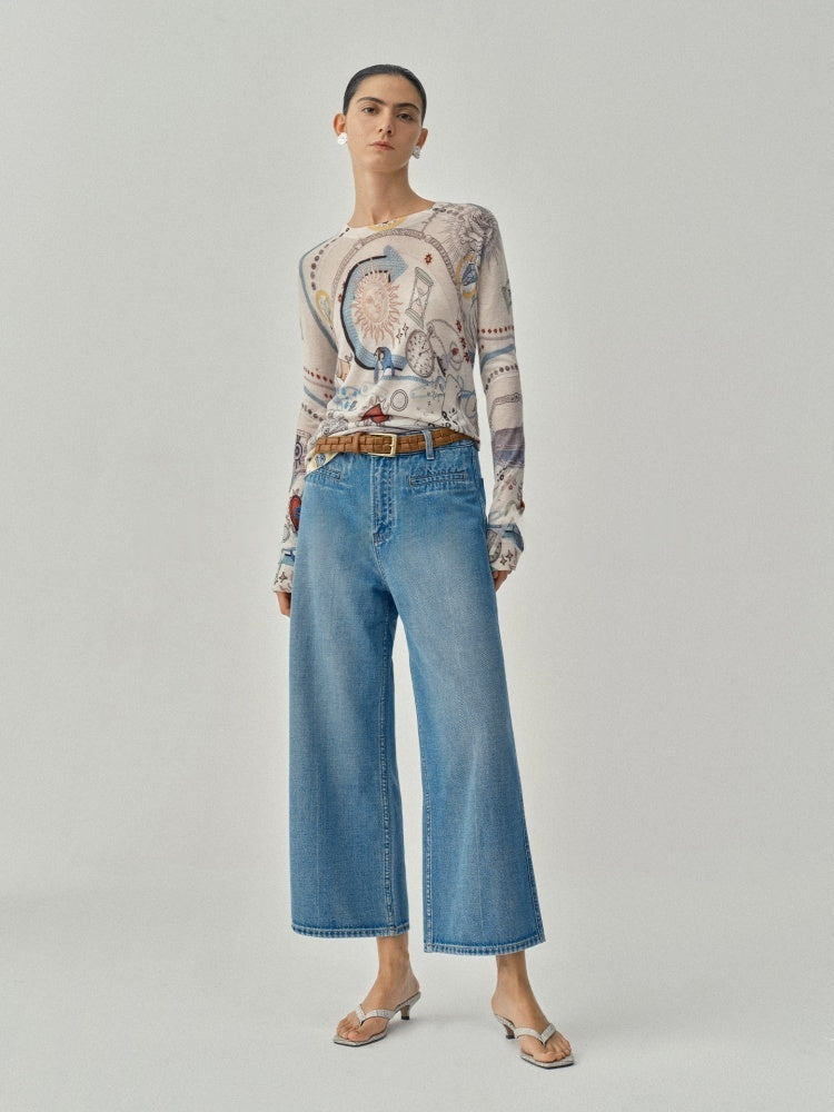 Colorful Hand-Painted Print Ultra-Soft Water-Soluble Wool Knit Sweater