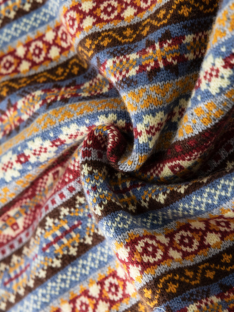 - Unique Fair Isle jacquard with geometric patterns for a standout vintage-inspired look