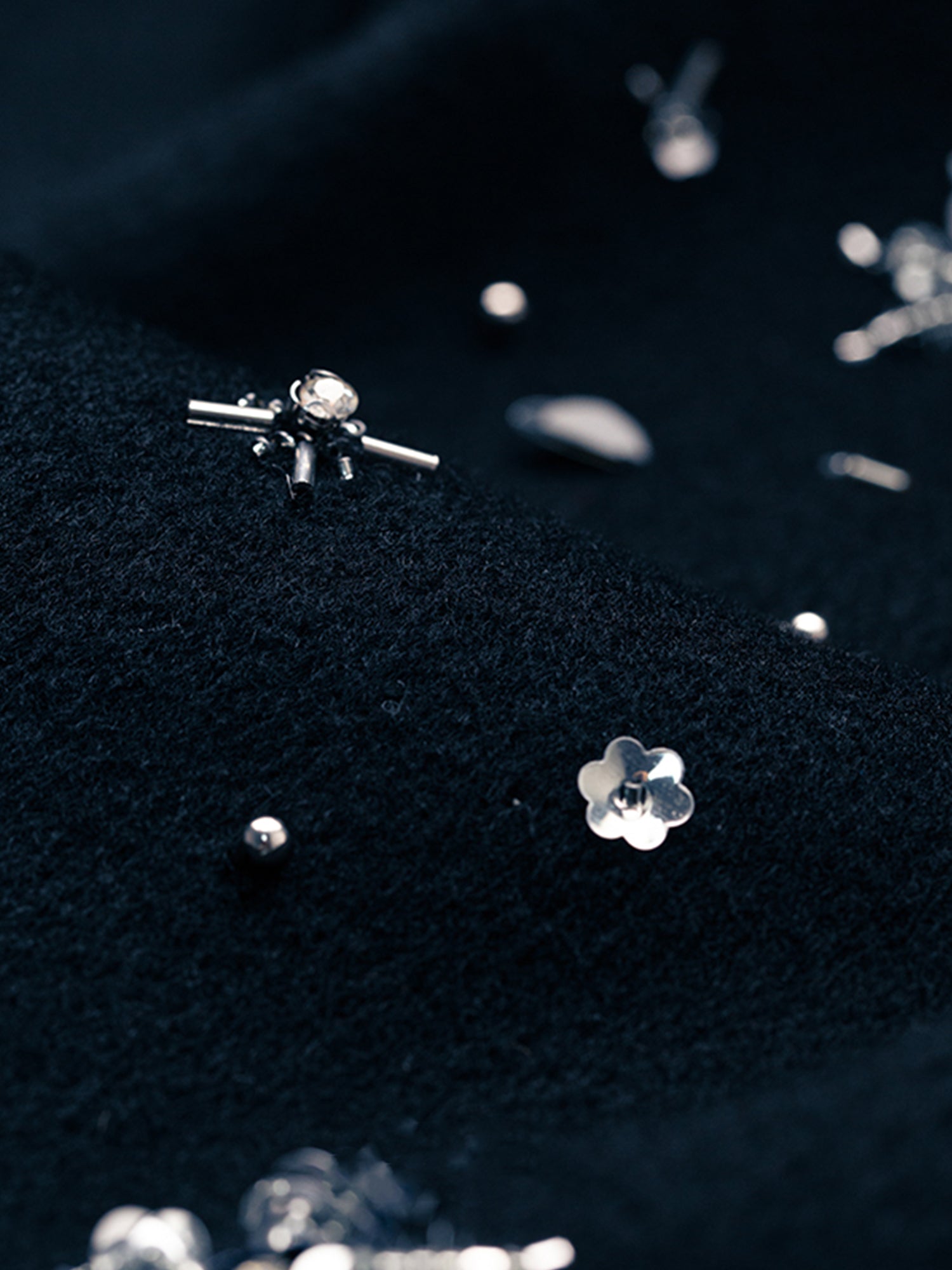 French Elegant Wool Cape Coat – New Winter Woolen Jacket with 3D Snowflake Beading