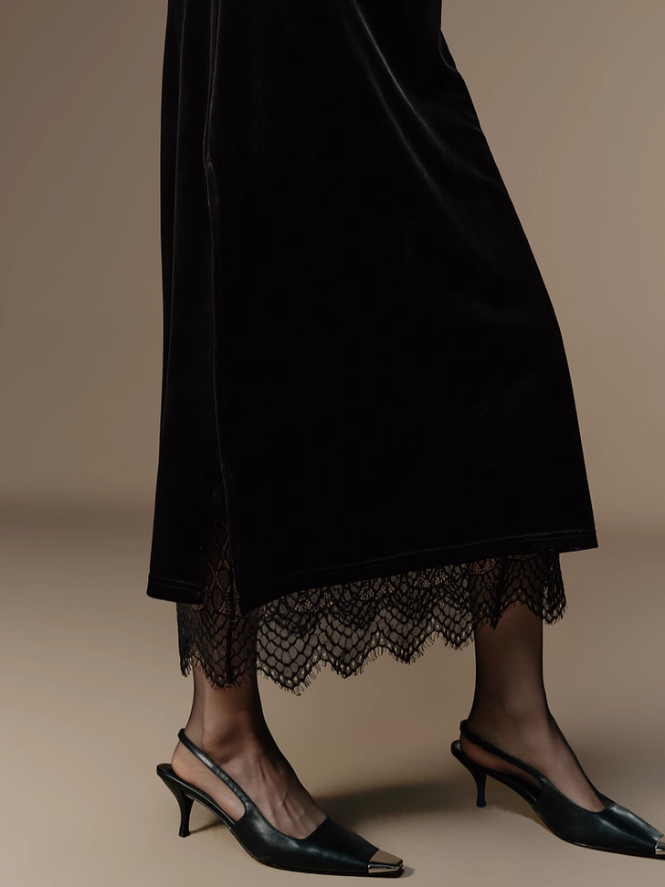 - 2. Hand wash in cold water or dry clean recommended to preserve the velvet texture and lace details.
