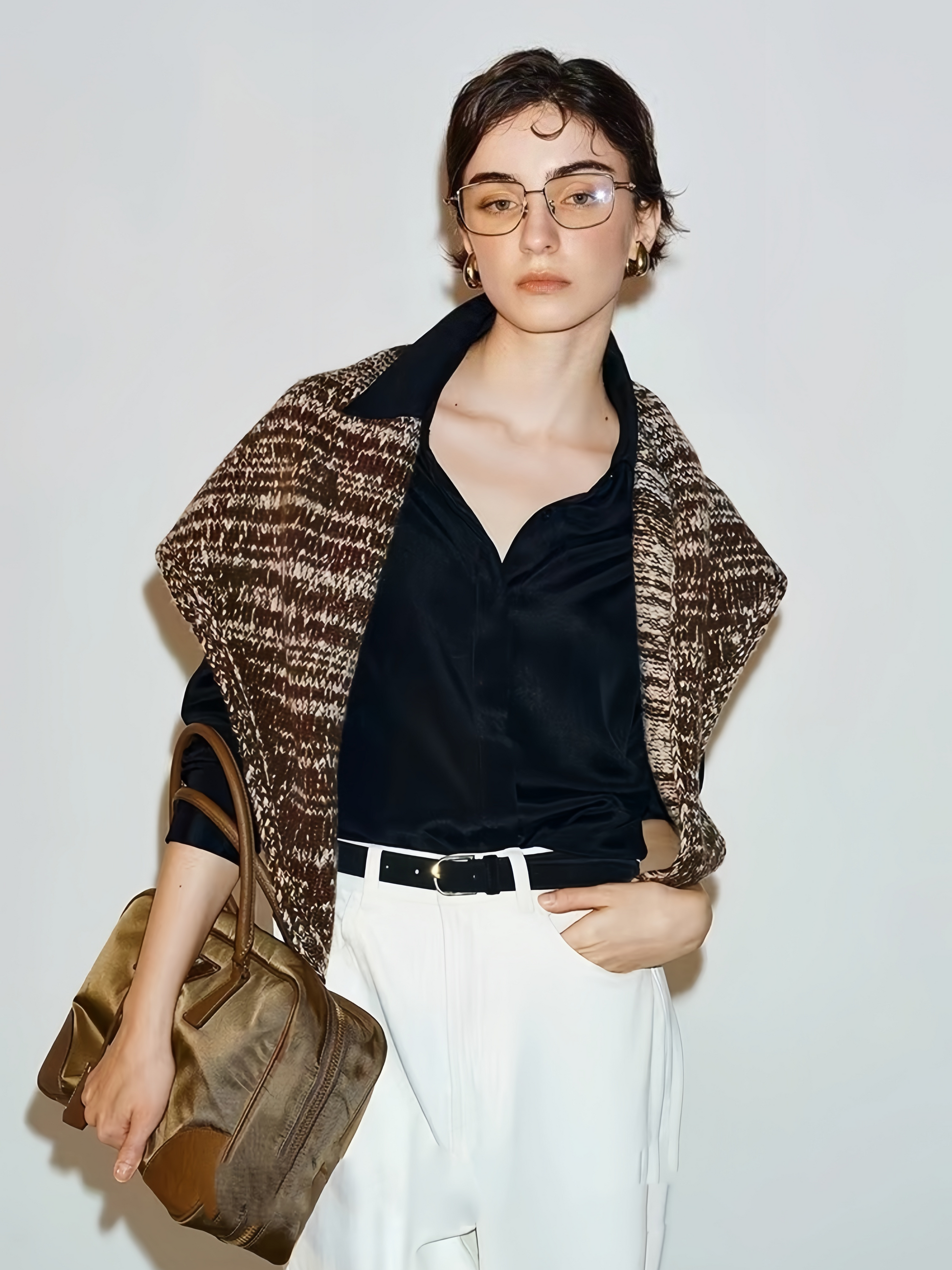 French Vintage Bouclé Triangle Shawl | Nordic-Style Warm Wool-Cashmere Winter Scarf