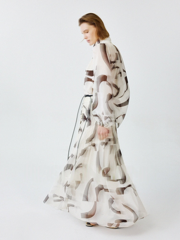 Geometric Logo Print Chiffon Skirt for Vacation & Commuting | Lightweight Elegant Women's Summer Skirt
