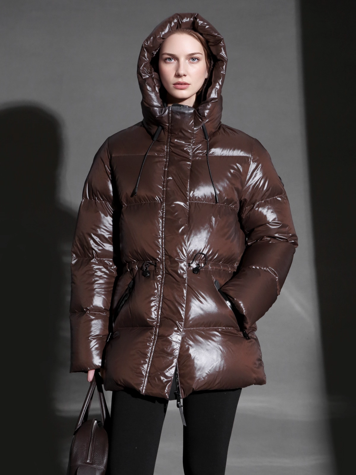 Glossy Hooded Down Jacket for Women | Water-Repellent Windproof Insulated Short Puffer Coat