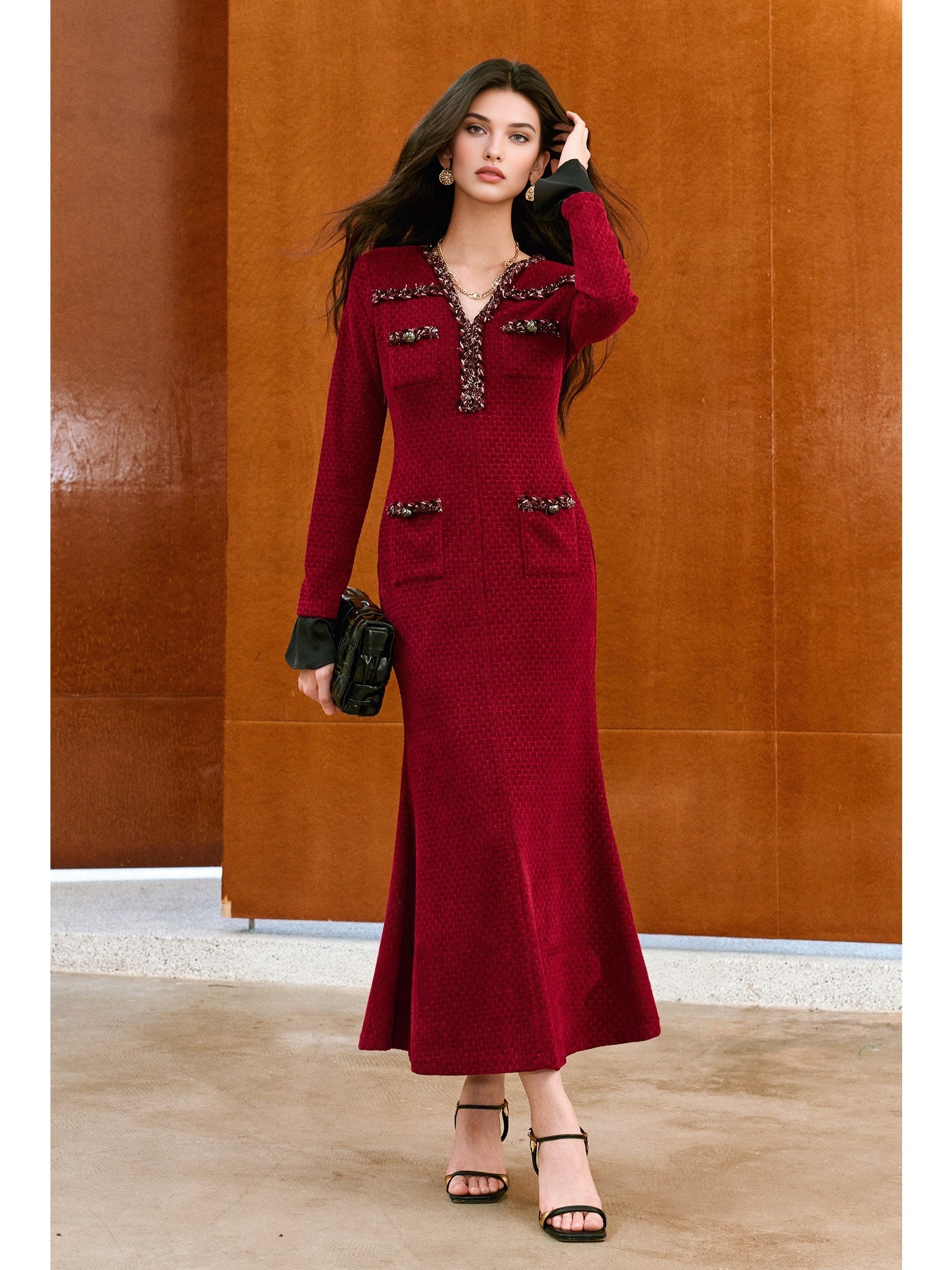 Heavyweight Silver Checkered Mermaid Dress – Waist-Cinching Little Black Dress Style with Custom Woven Detail
