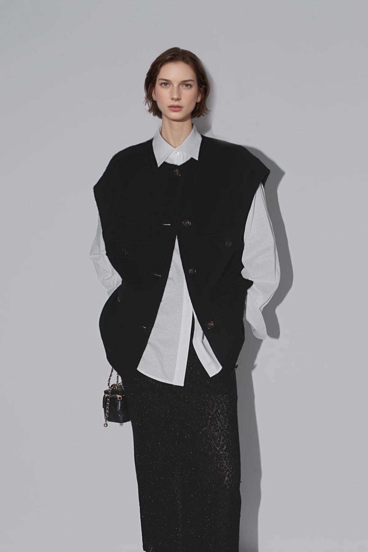 - Classic waistcoat silhouette with versatile styling possibilities