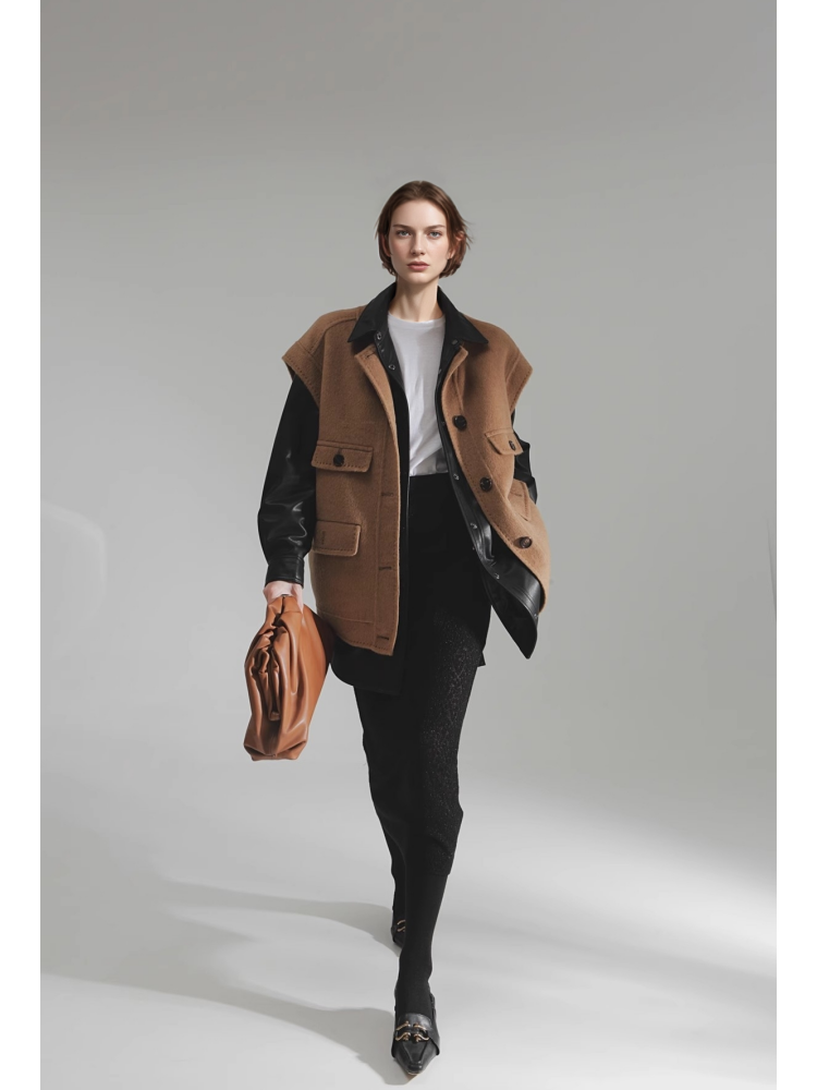 Luxury Camel Hair Vest for Women – Reversible Wool Gilet Winter Sleeveless Coat