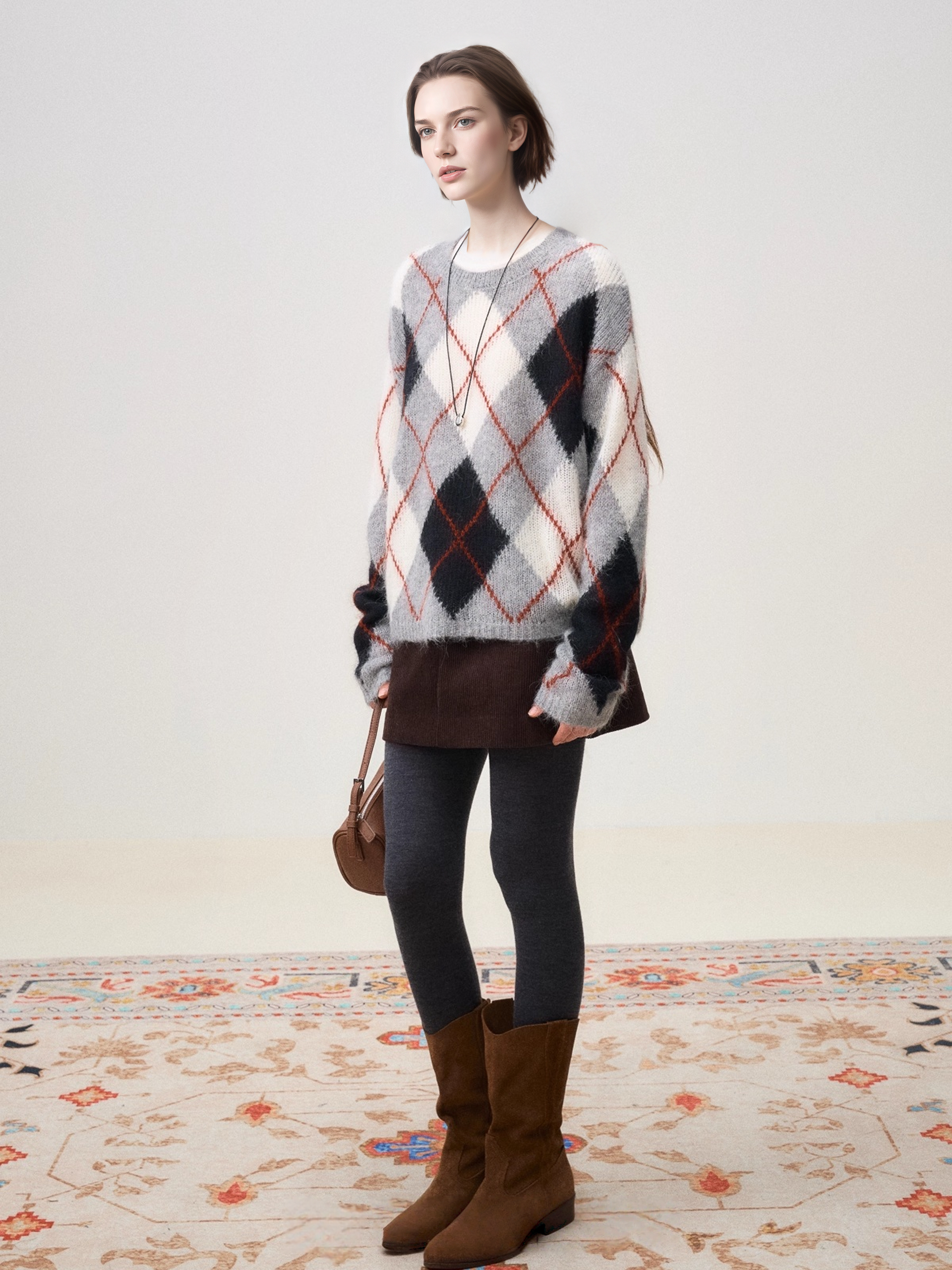 Peruvian Alpaca Wool Diamond-Pattern Pullover Sweater | Warm, Breathable Color-Contrast Knit