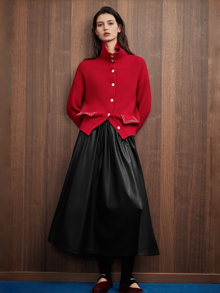 Red Knit Cardigan for Women – New Winter Merino Wool Cozy Christmas Sweater