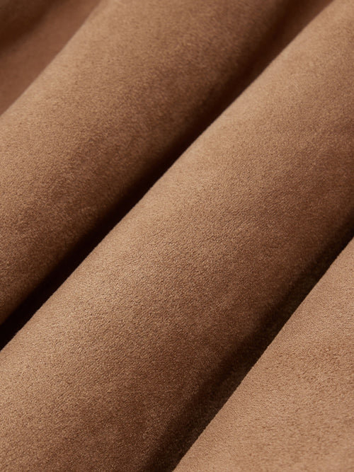 - Yellowish Brown features custom color-block tan brown suede