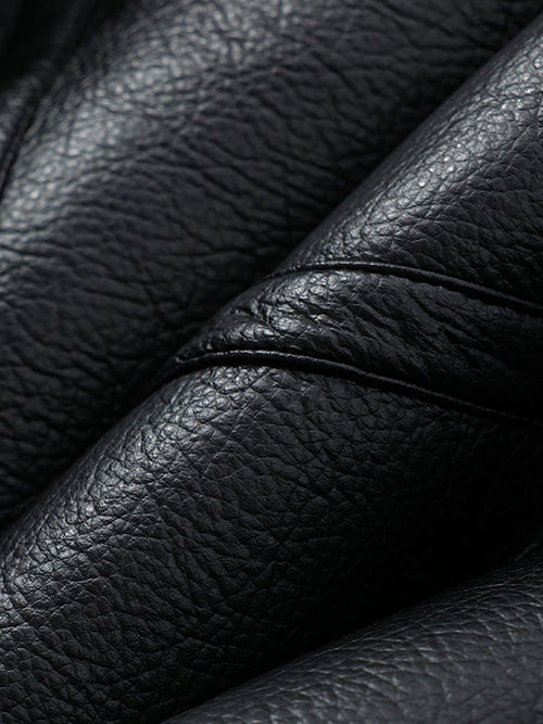 - Black features premium black woven PU leather