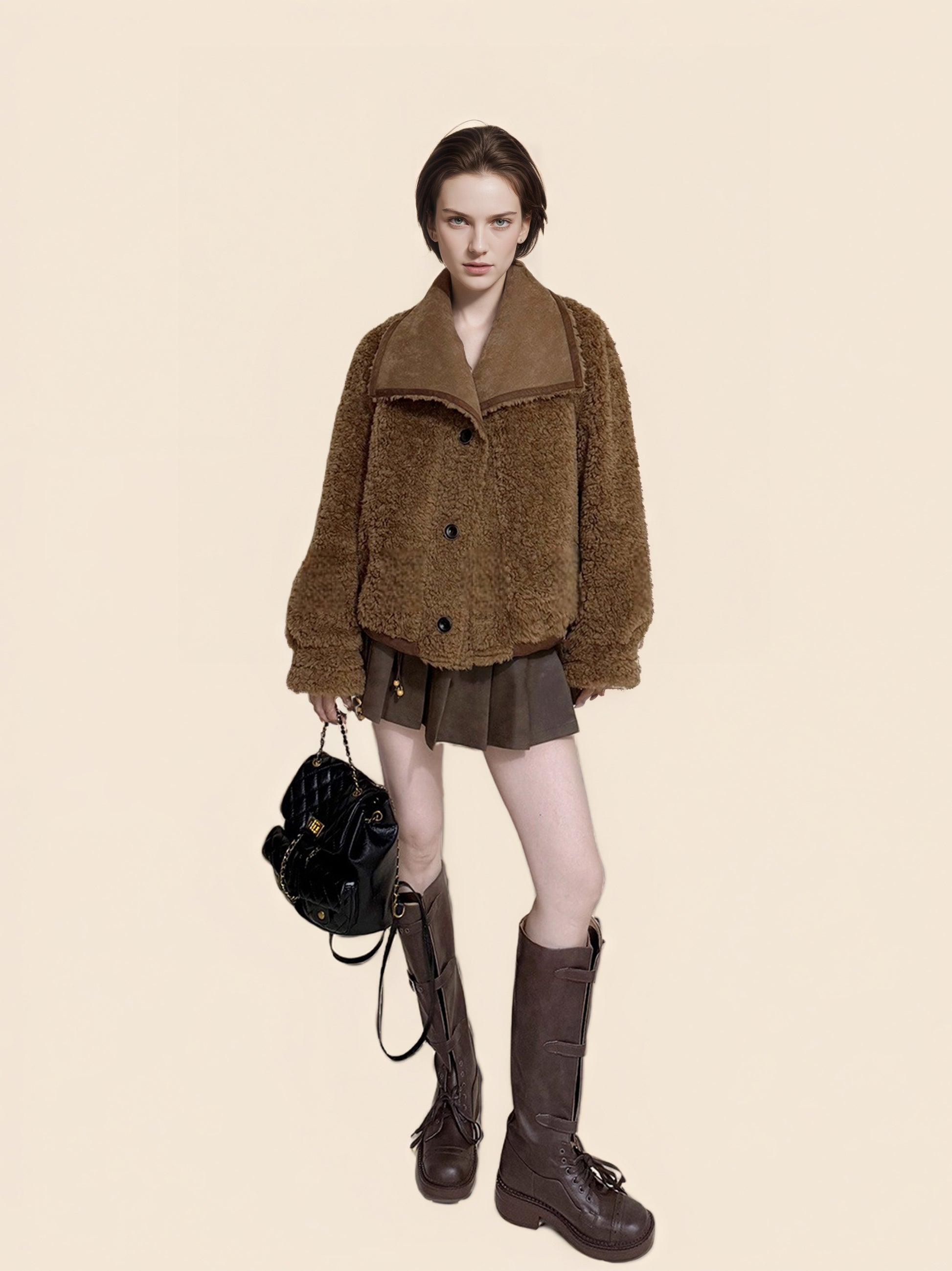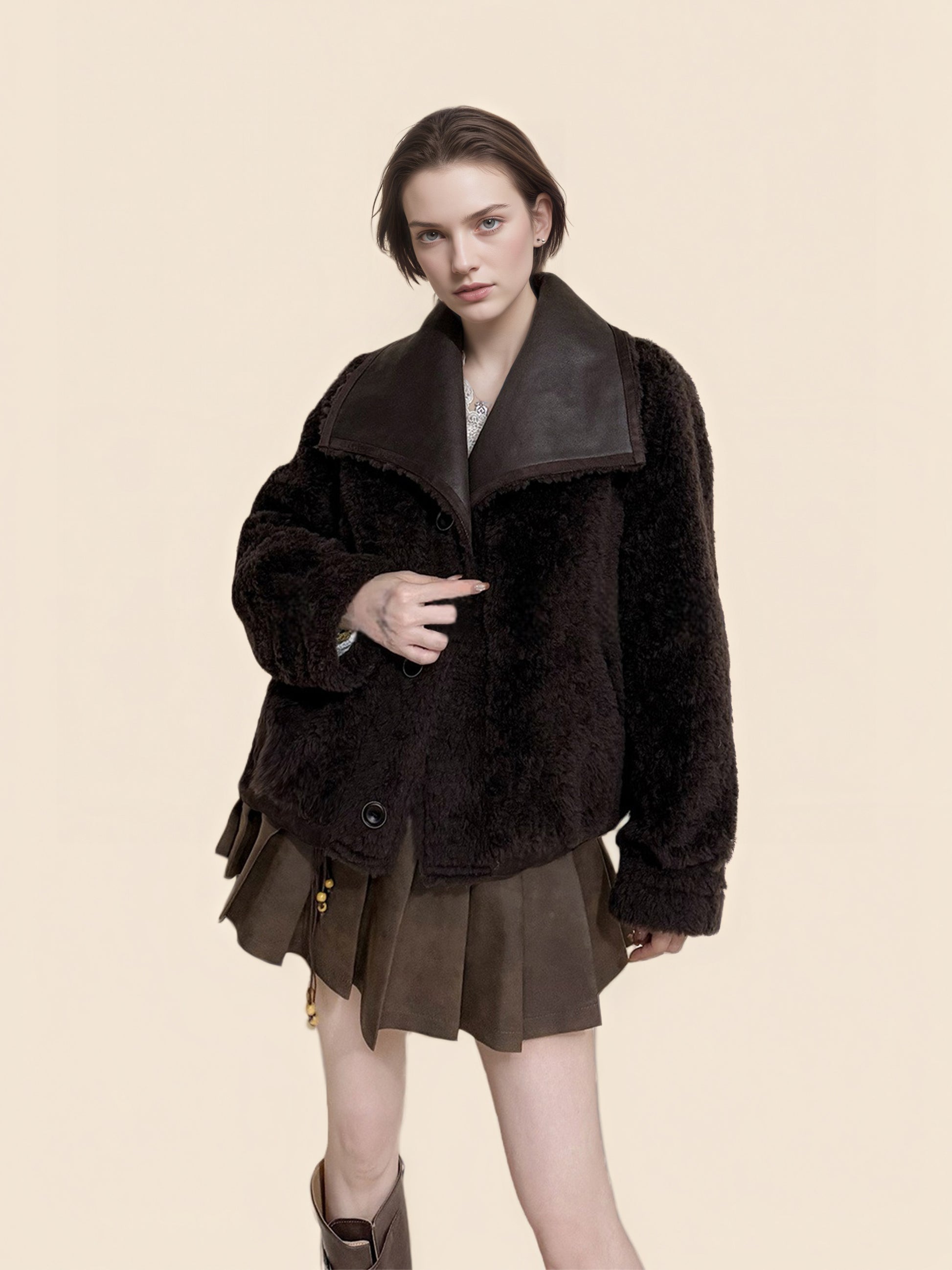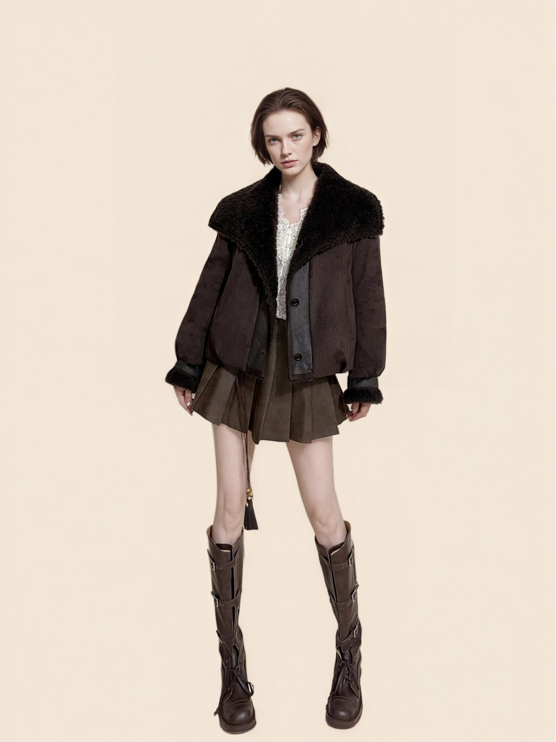 Reversible Suede-Finish Coat for Women – Faux Shearling Lined Winter Short Jacket with Lapel Collar