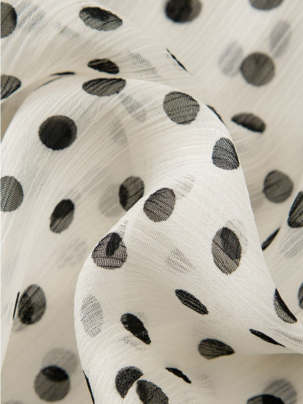 - Light and transparent chiffon fabric with beautiful polka dot print