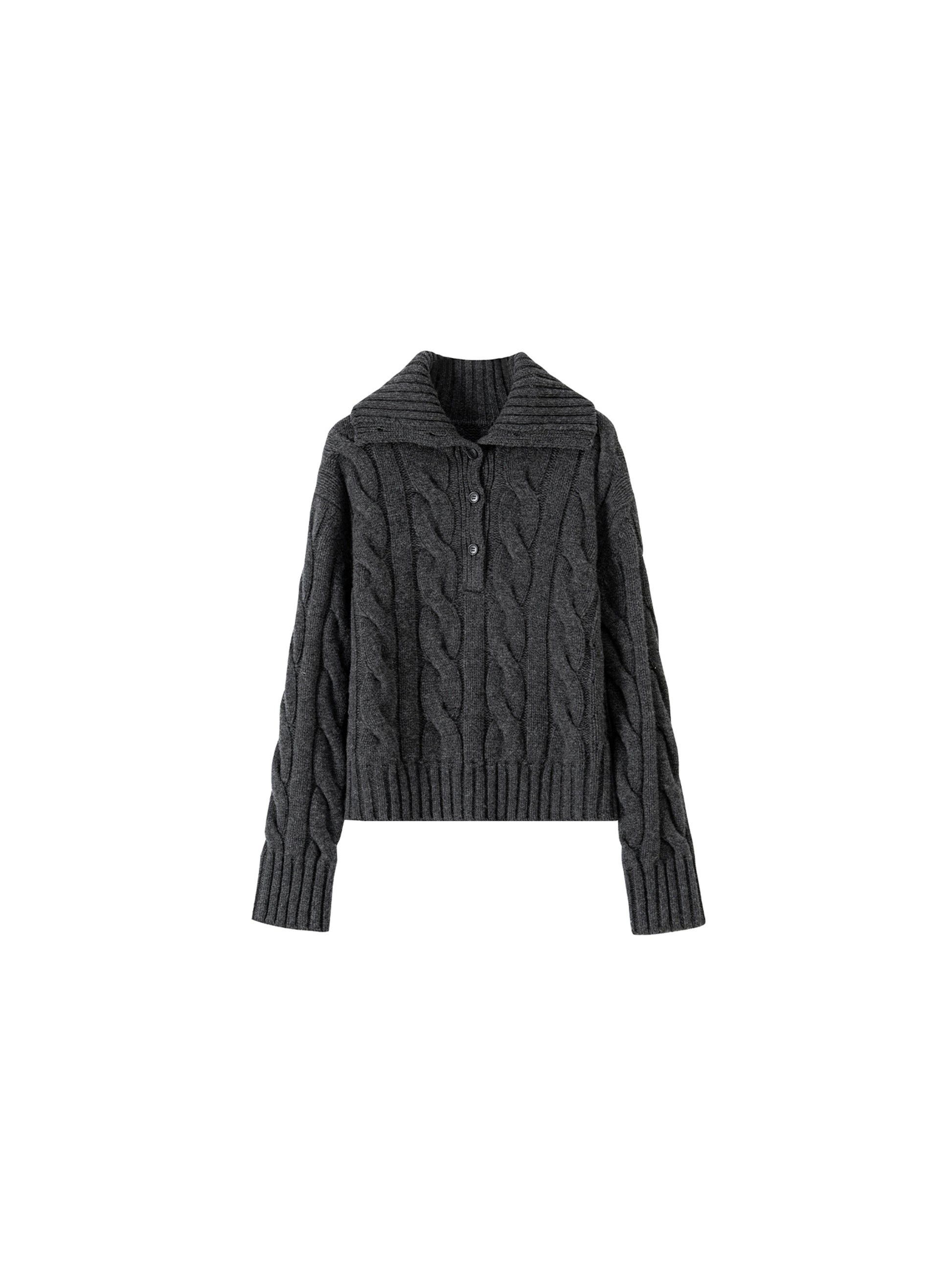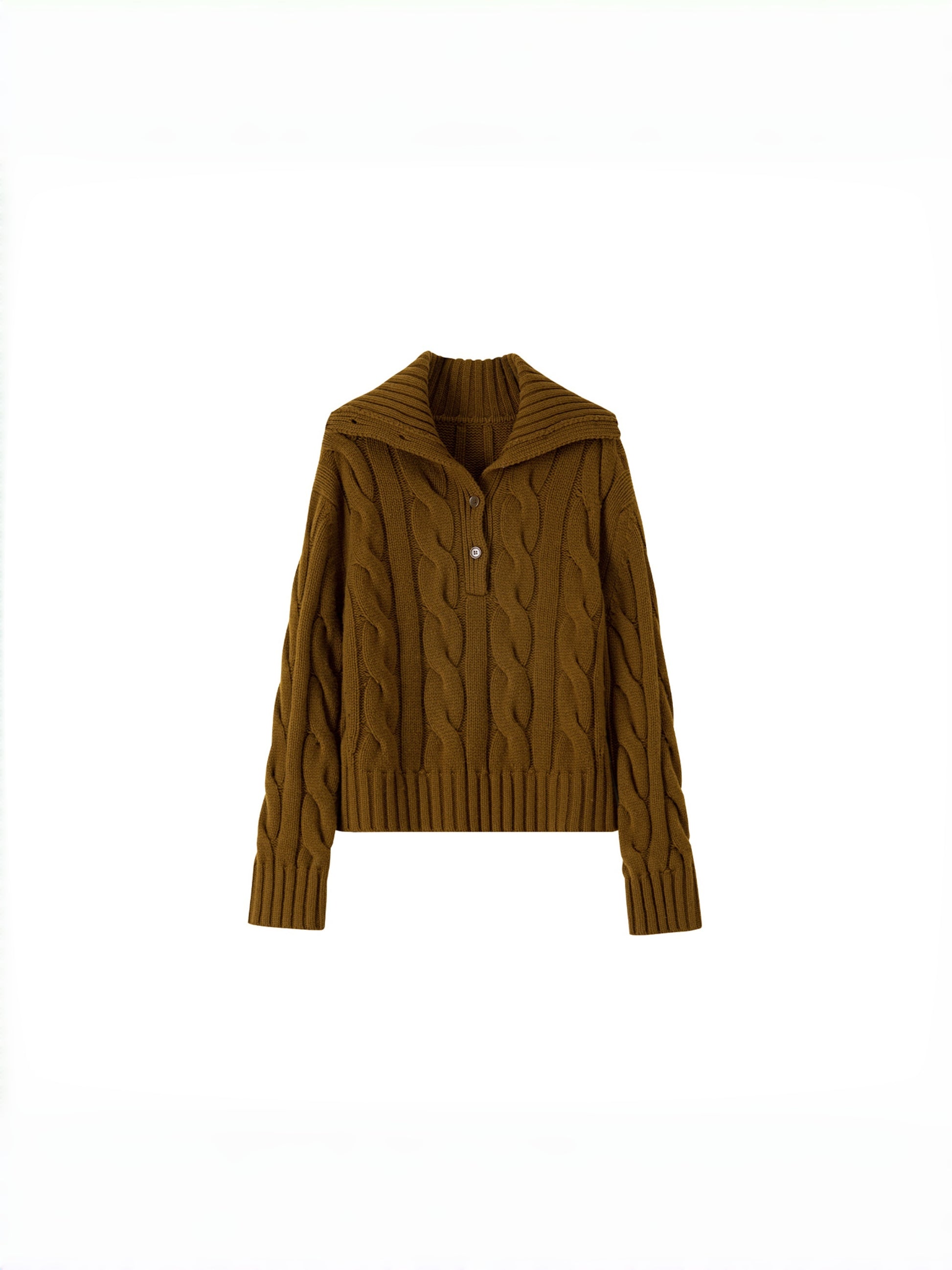 Sculptural Cable Knit Series Autumn/Winter Essential Pure Wool Yarn Chunky Knit Polo Sweater – Oversized Silhouette
