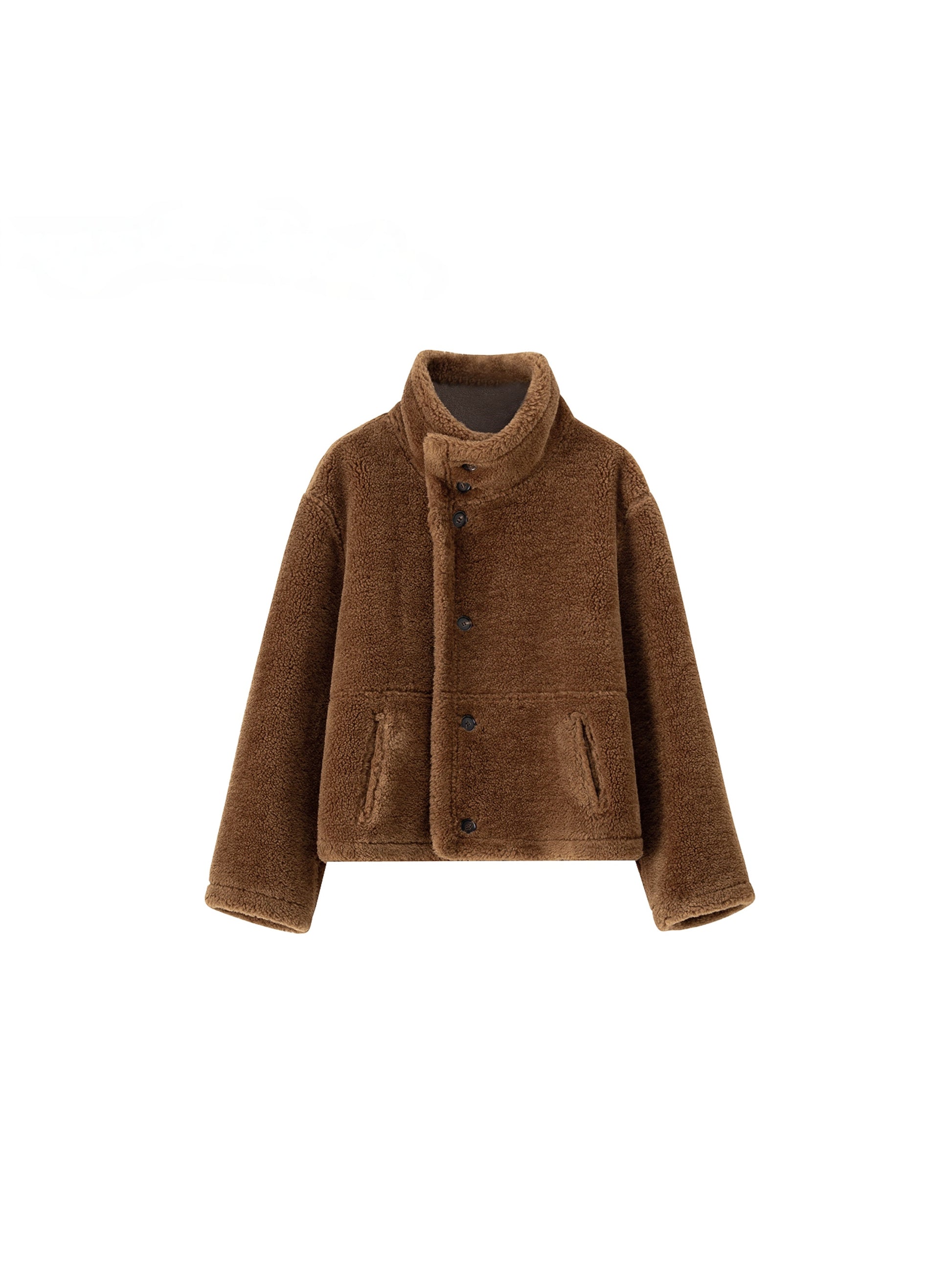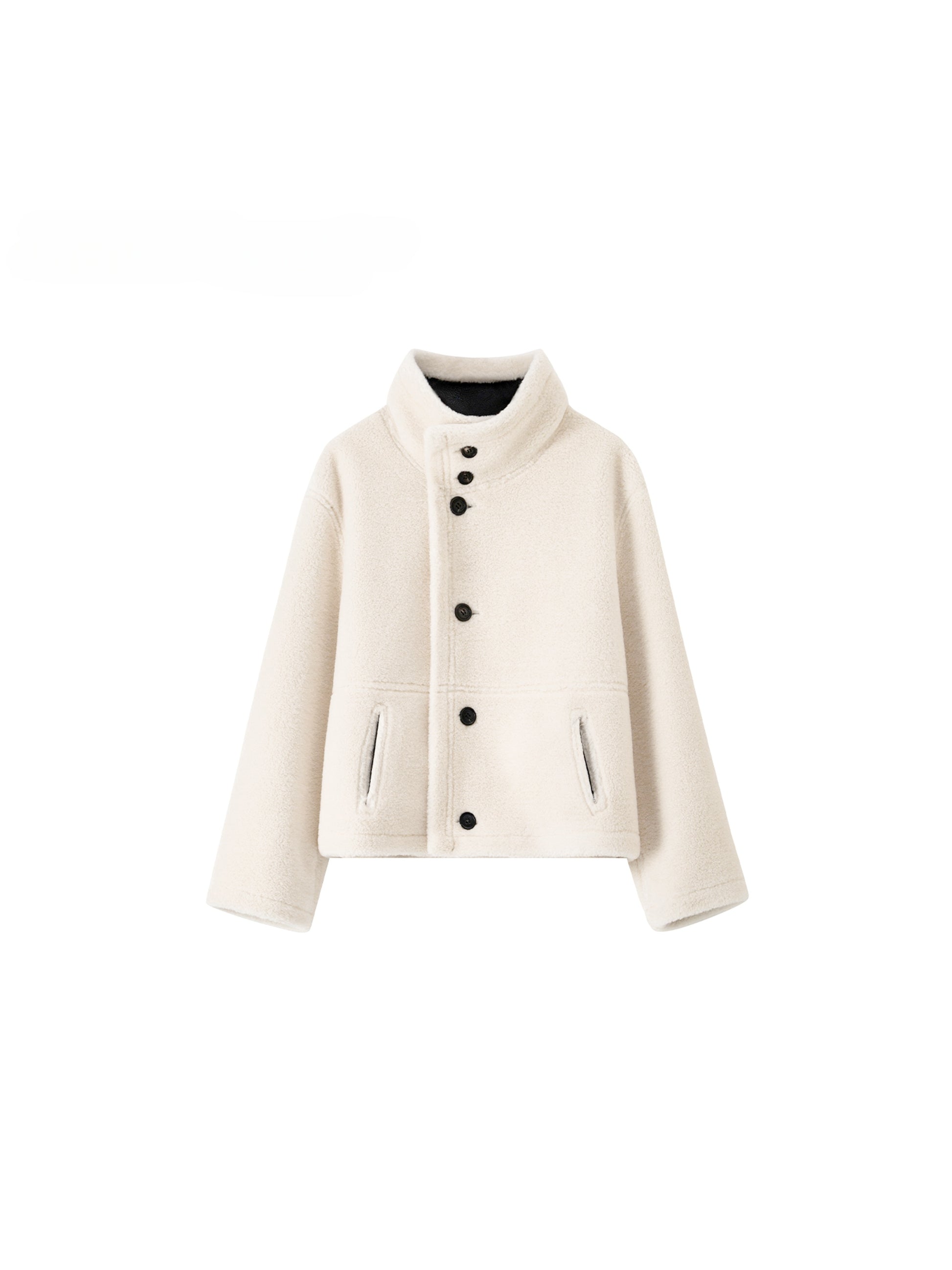 Soft and Dense Reversible High-Collar Tailored Jacket with Double-Sided Wear