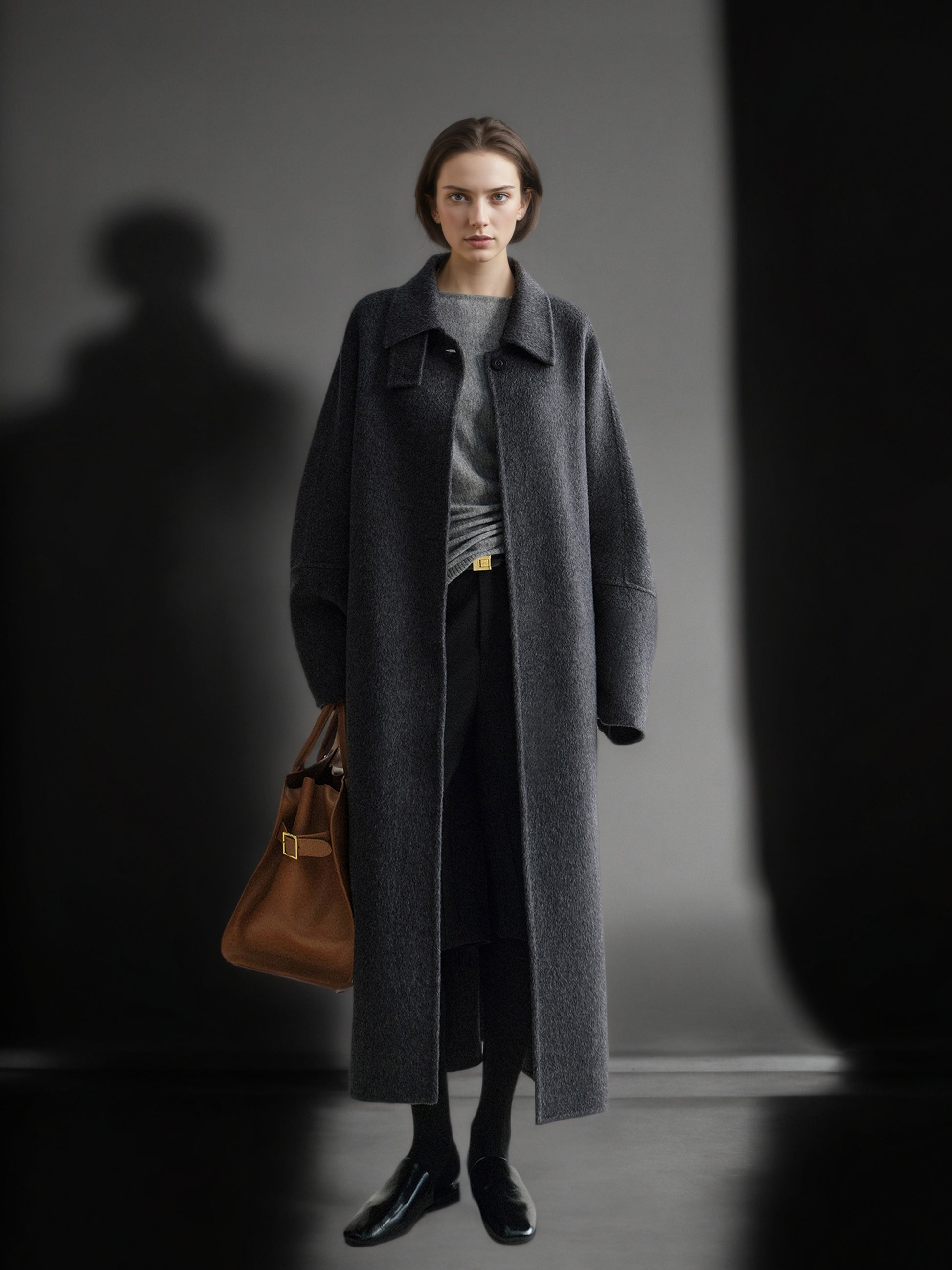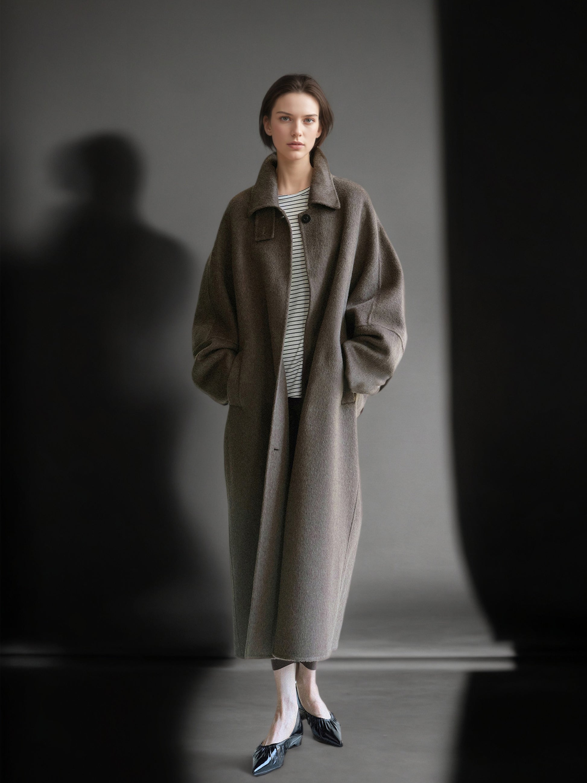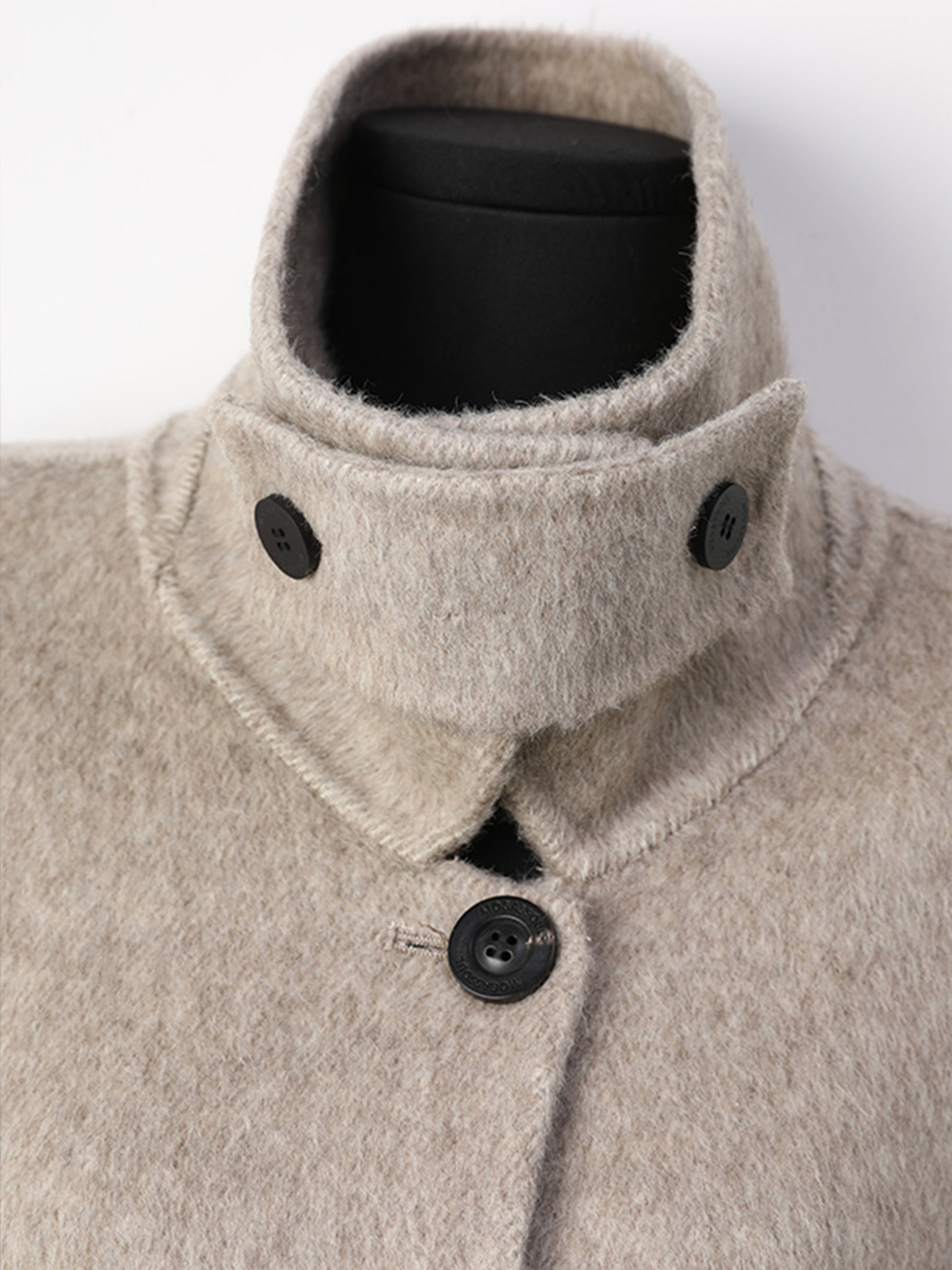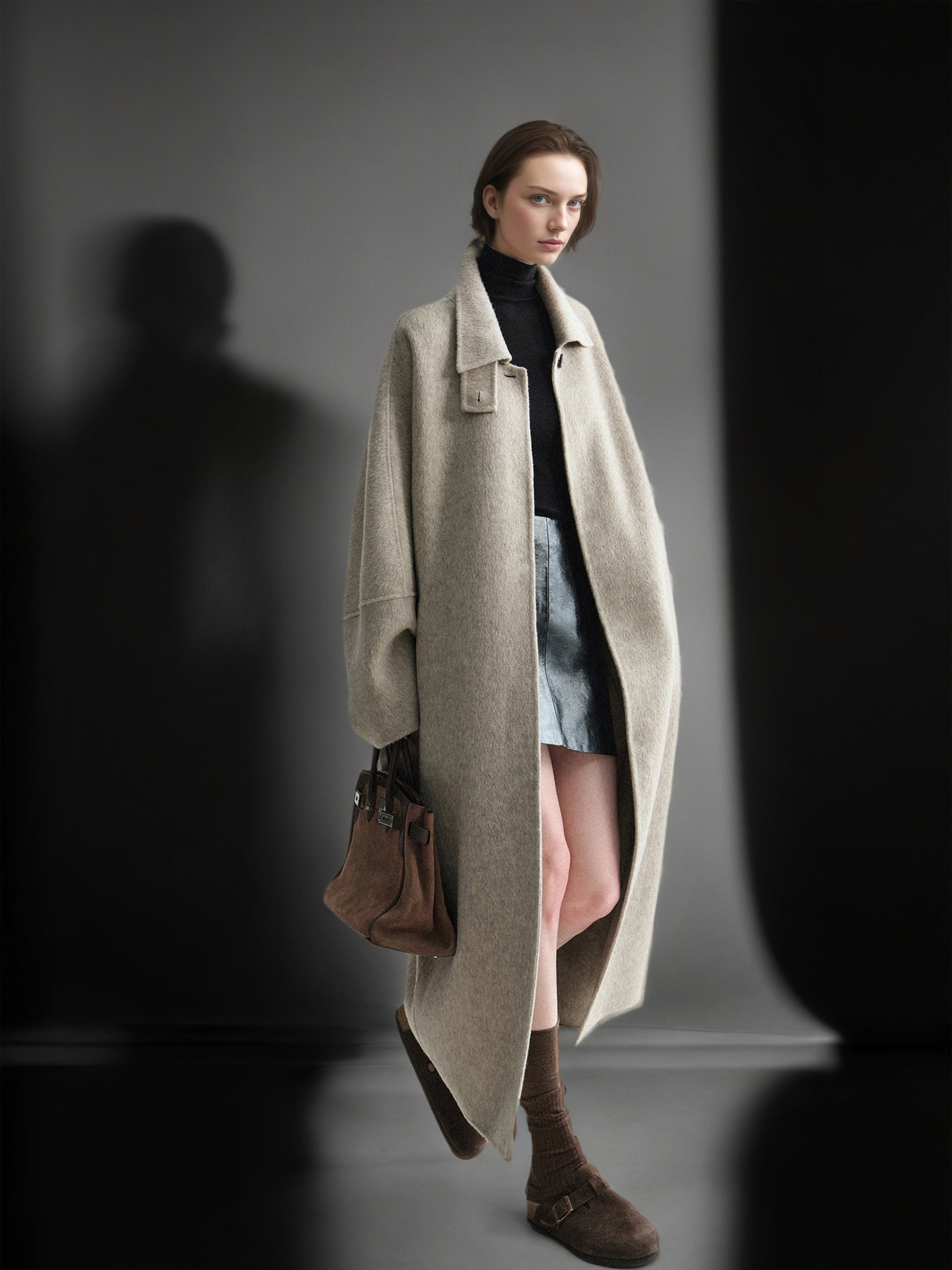 Tailored Wool, Camel & Yak Hair Coat with Complimentary Triangle Scarf – Old Money Style Double-Faced Wool Overcoat for Women Fall/Winter
