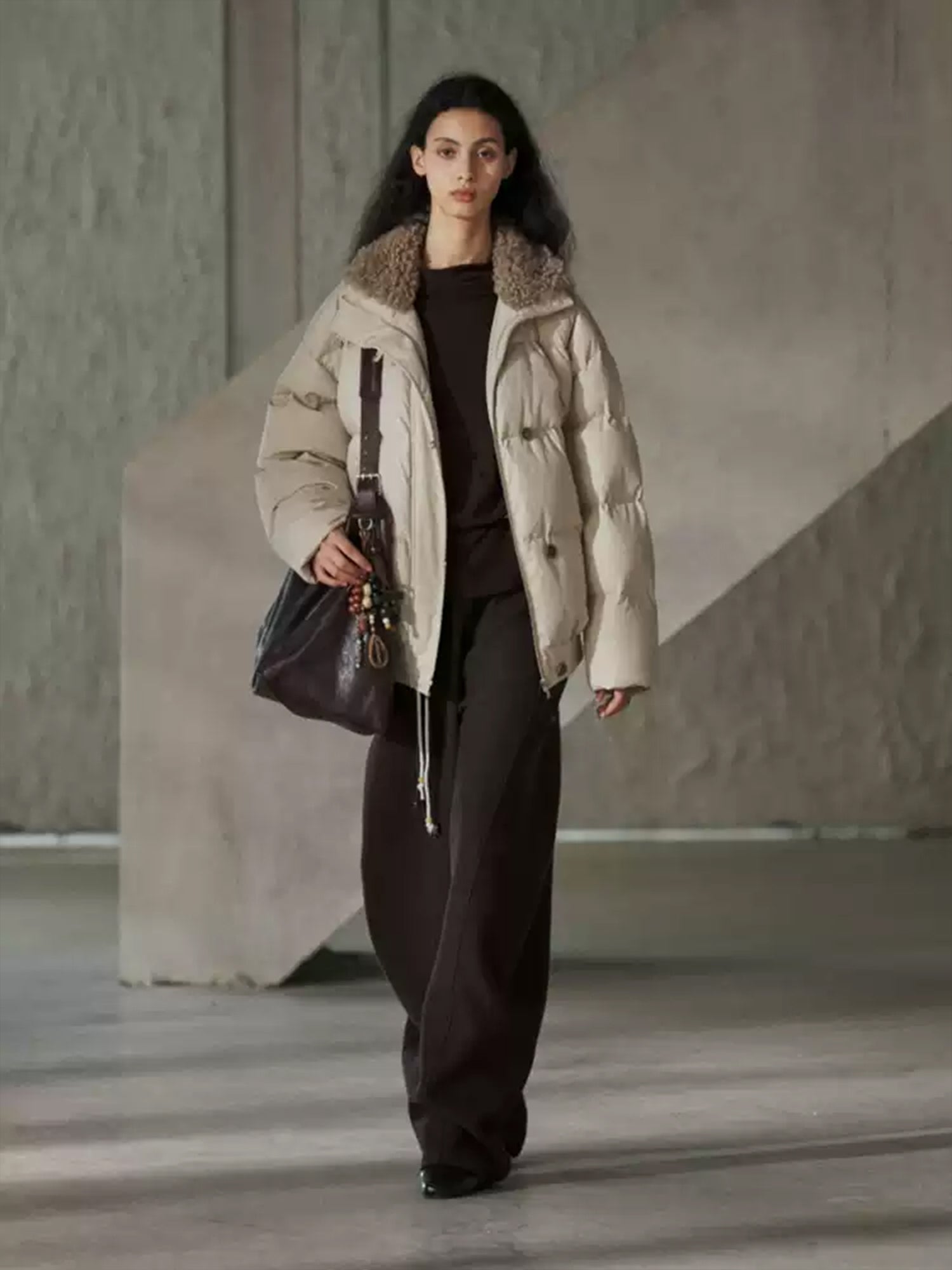 - Thick puffer coat design with fashionable silhouette