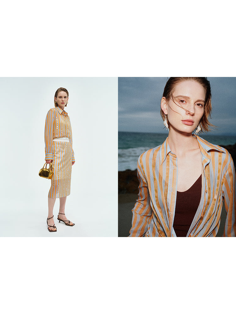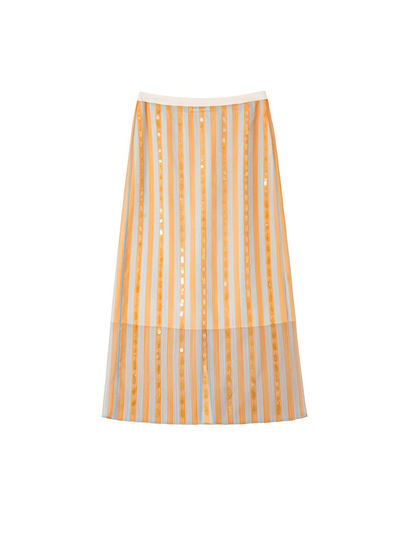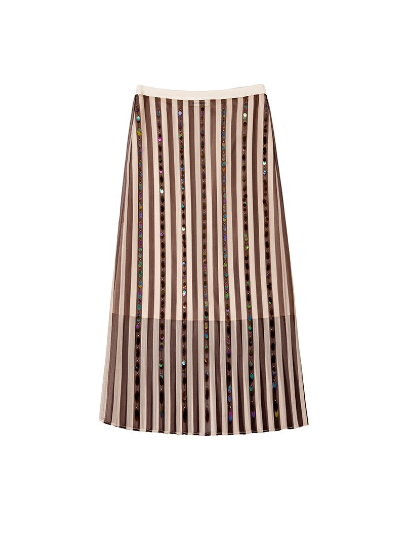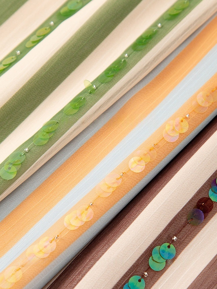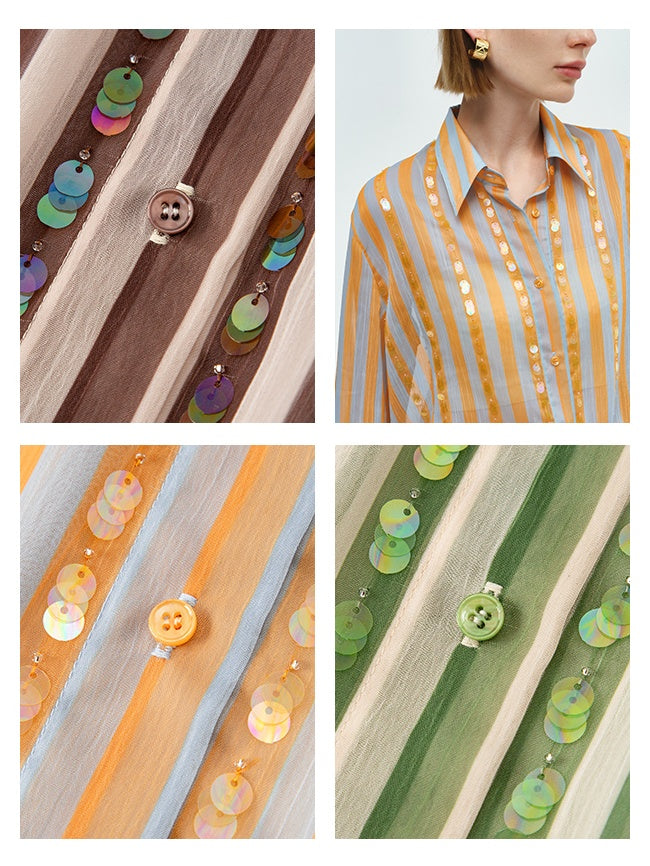 Ultra-Light 75D Chiffon Sequin-Striped Shirt & Skirt Set | Chic Work-to-Vacation Women's Outfit