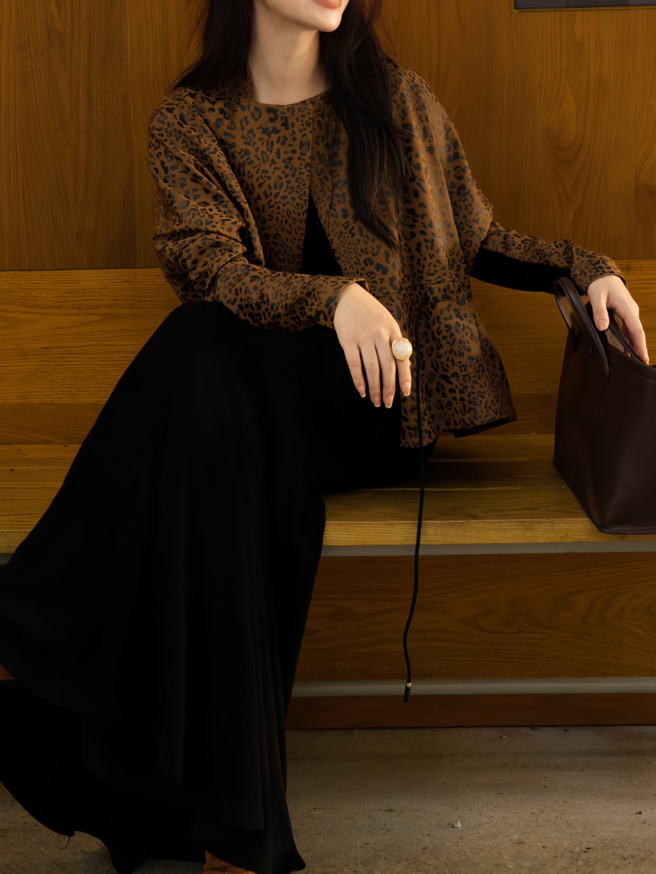 Vintage Leopard Print Shirt Jacket – 2025 Autumn Waist Belt Loose Fit Short Coat for Women