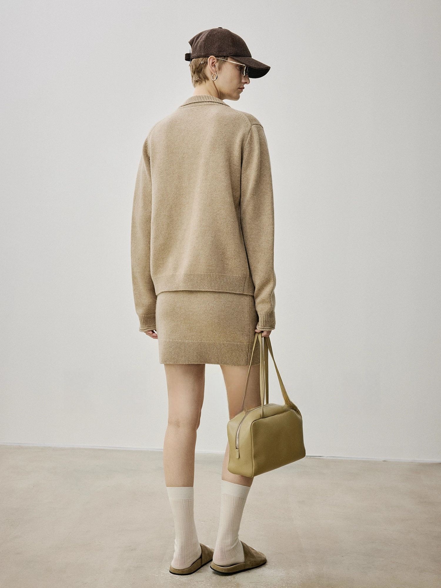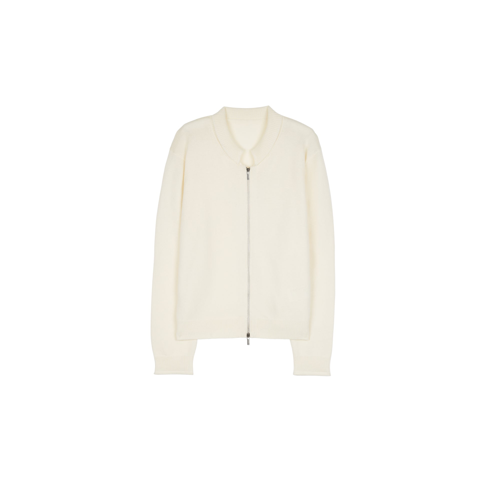 Women’s Heavyweight Australian Superfine Merino Double-Layer Knit Cardigan | Vintage Scallop Collar, Two-Way Zipper & Rolled Hem