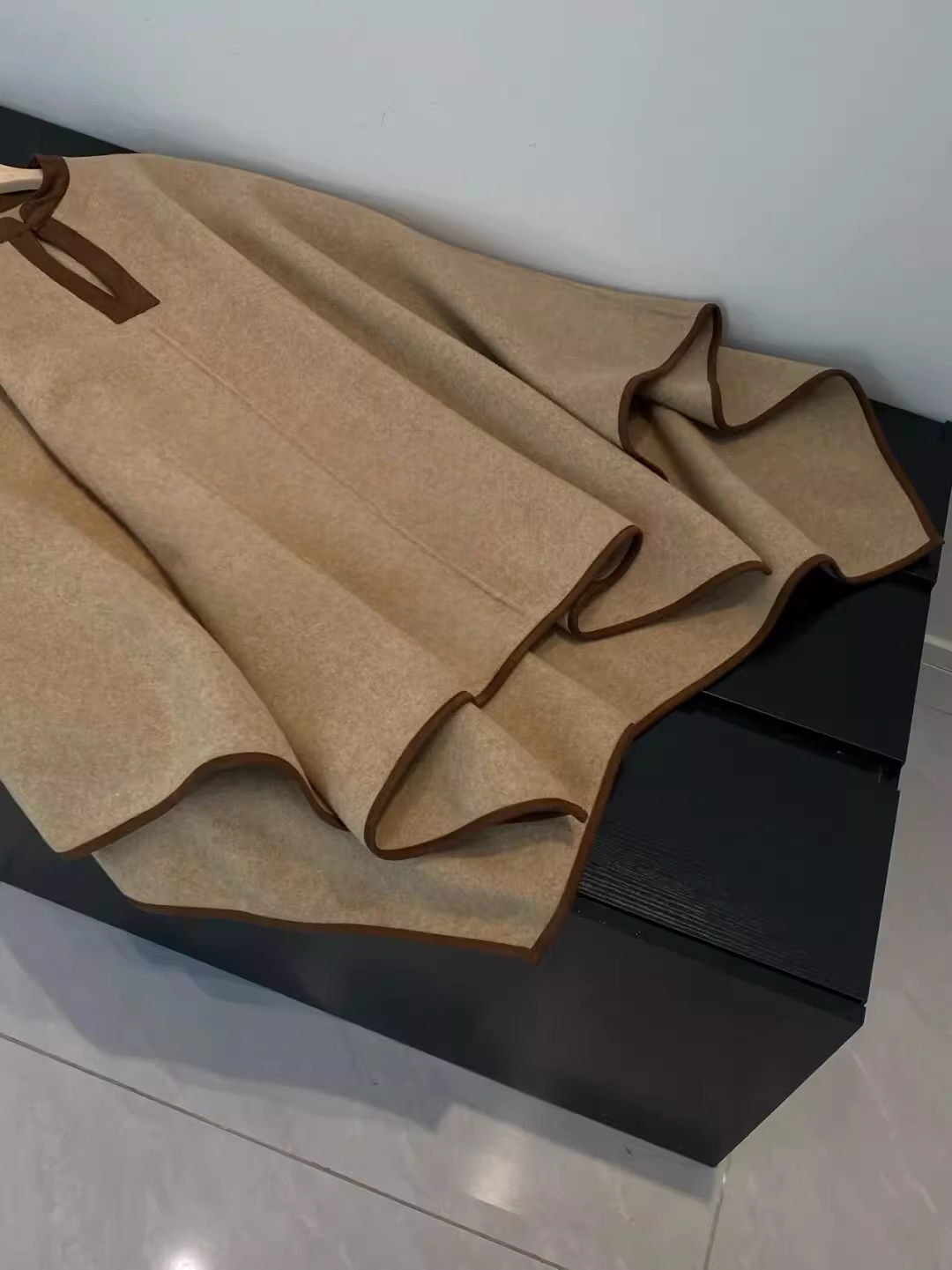 Women’s Minimalist Shearling Patchwork Cape Coat | Premium Merino Wool & Suede Blend Outerwear