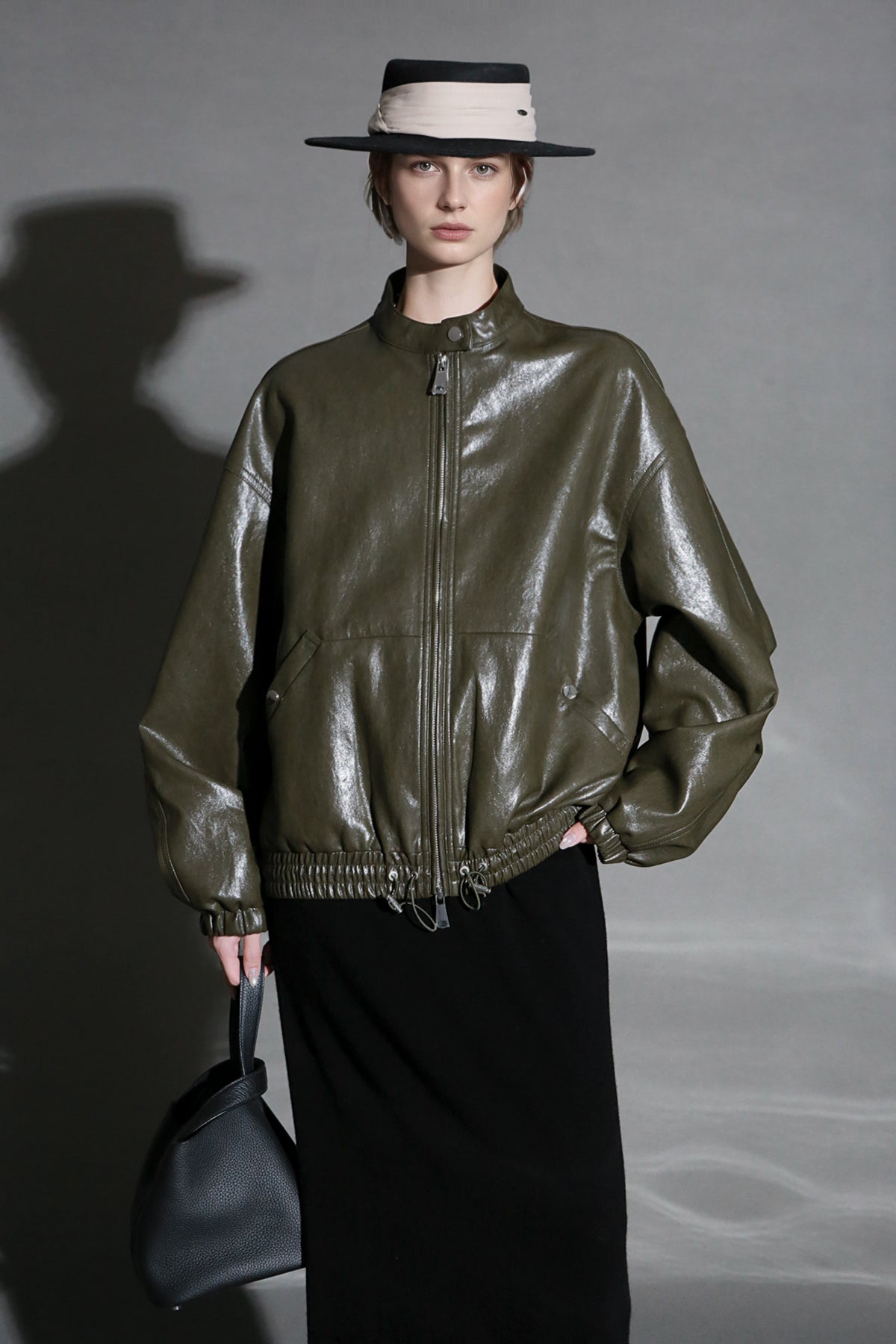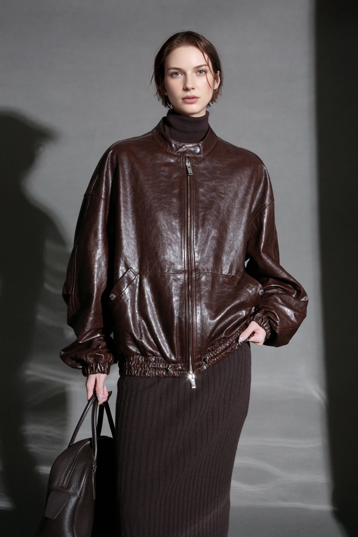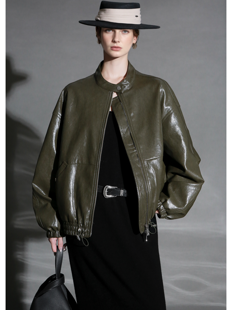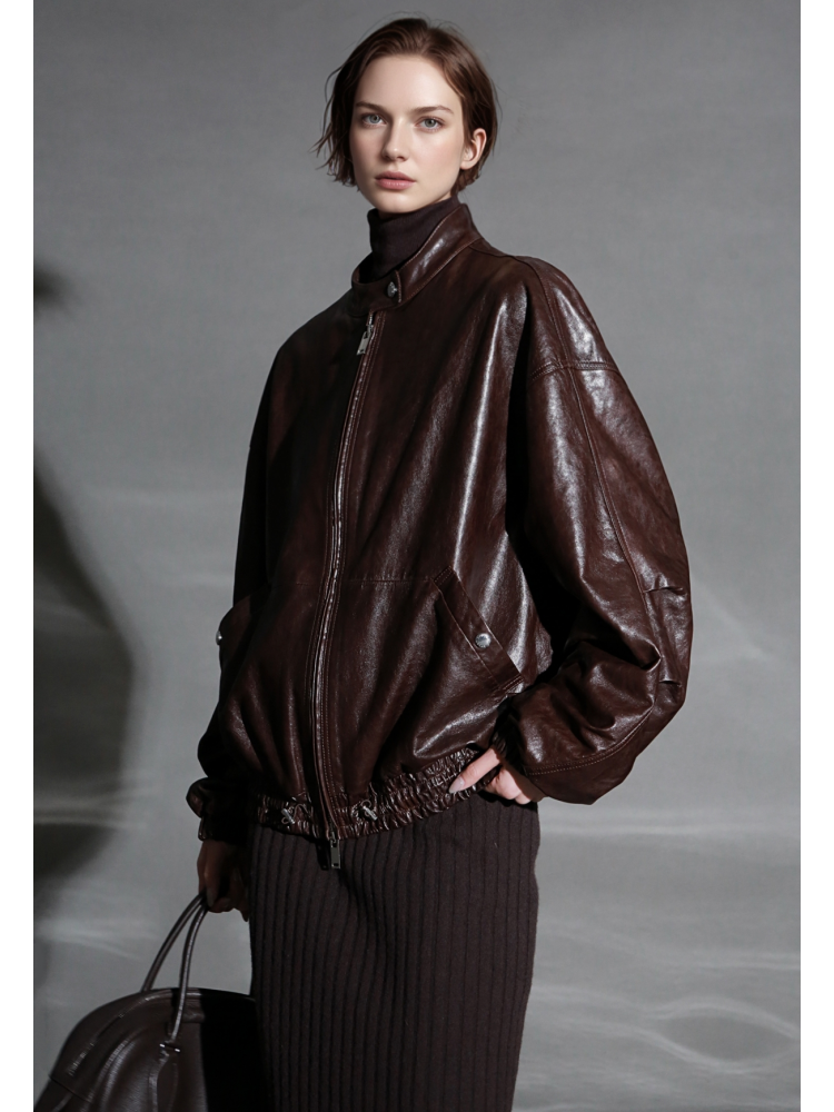 - Asymmetrical zipper and classic collar define the iconic biker aesthetic