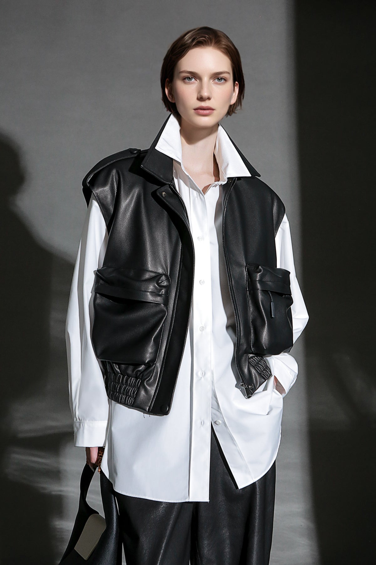 - Short length creates flattering silhouette