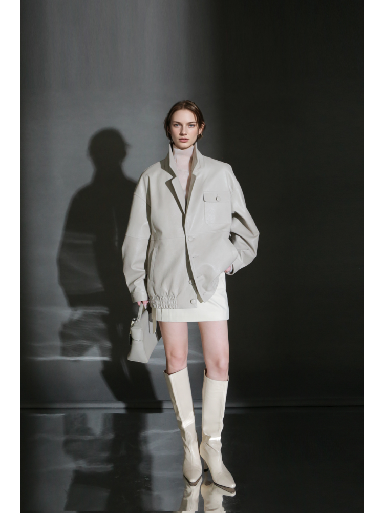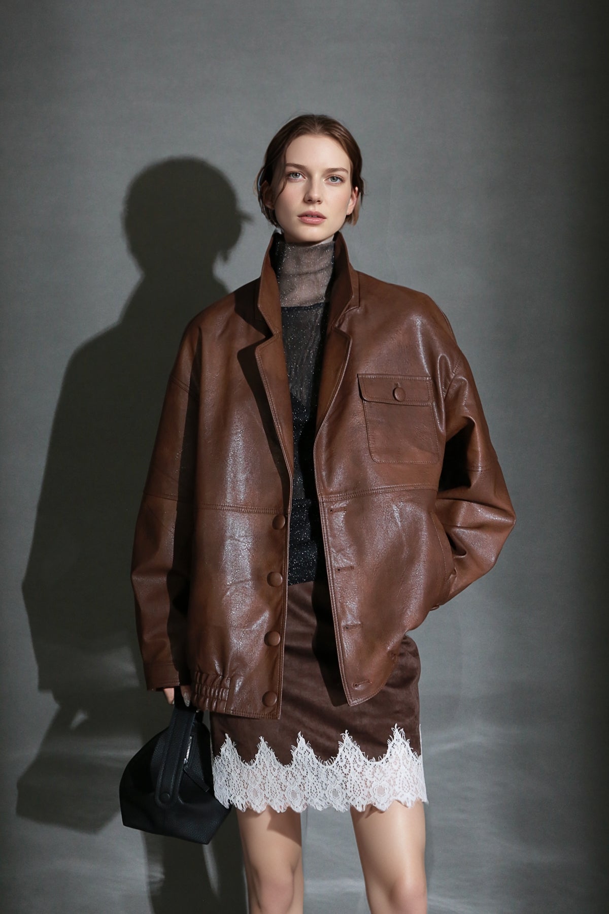 Women’s Vintage Waxed Sheepskin Leather Jacket – Distressed Blazer Collar Trendy Moto Outerwear