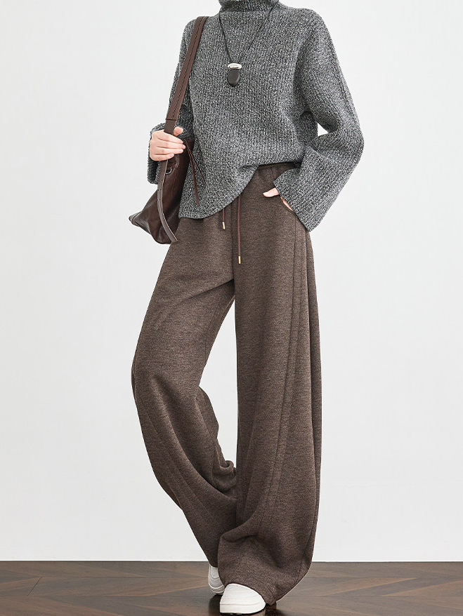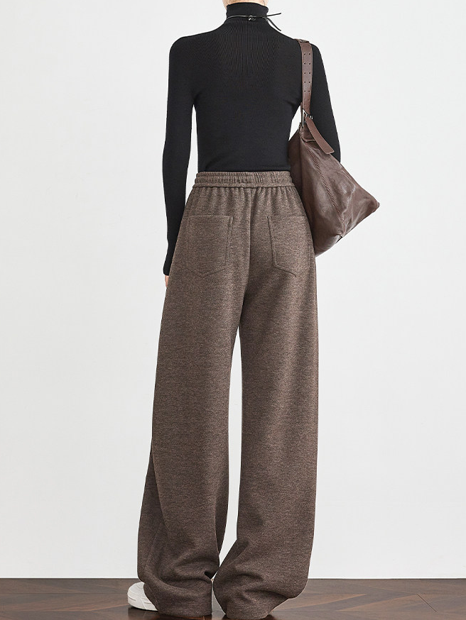 Women's Mocha Brown Wool Sweatpants – Thick Winter Old-Money Style Curved-Leg Athletic Trousers