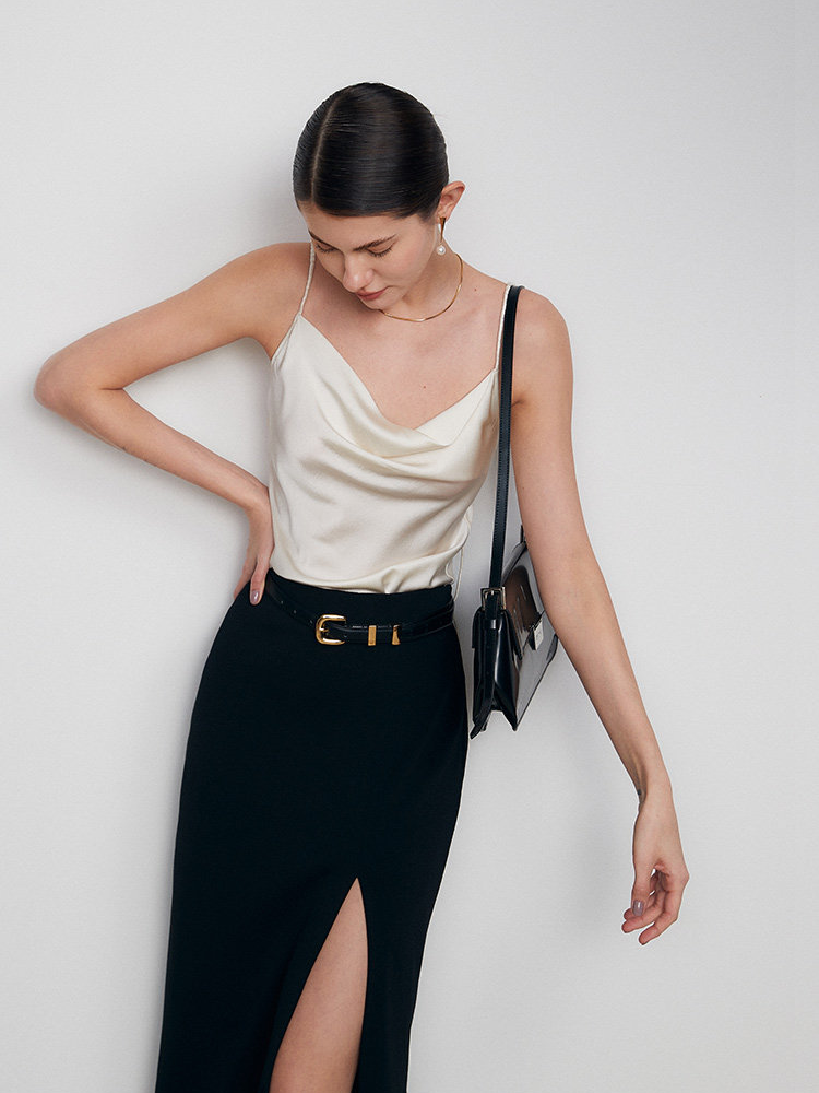 Women's Silky Soft Vanilla White Satin Cowl-Neck Silk Camisole – Elegant Minimalist Slip Top
